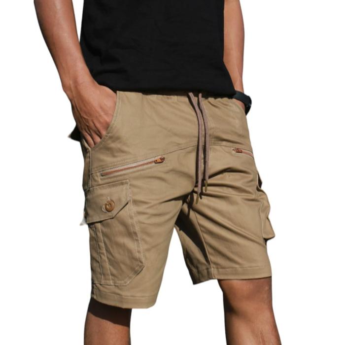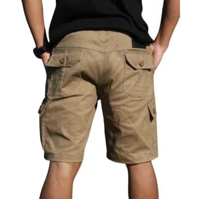 Celana Pendek Pria Katun Tebal & Melar dengan 8 Saku Aktif & saku zipper depan pinggang Karet Nyaman