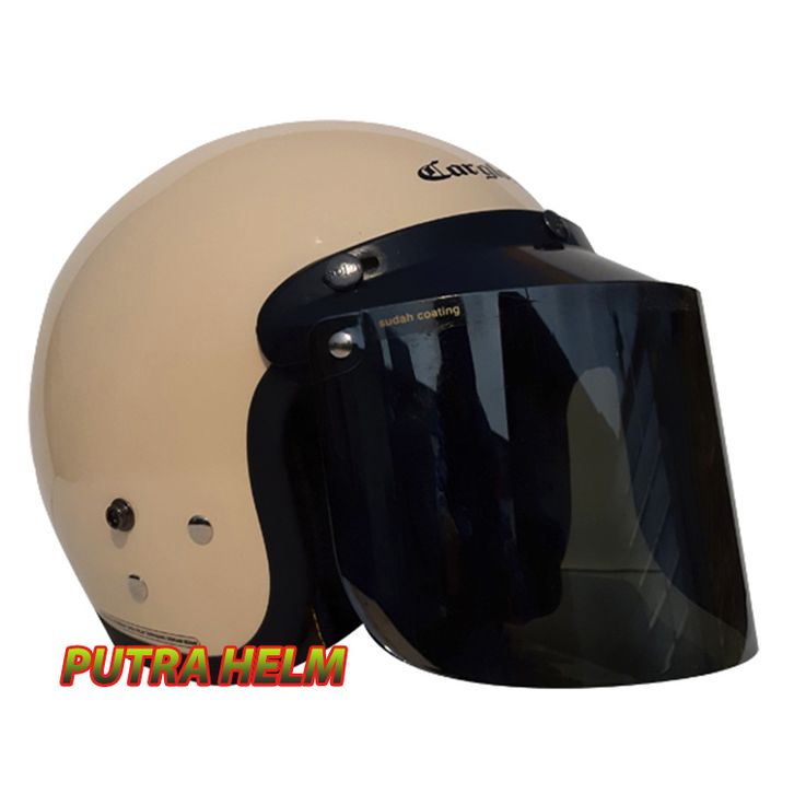 HELM CARGLOSS RETRO ARMY | HELM BOGO CARGLOSS | HELM CLASSIC HITAM METALIC | MERAH DOFT ORIGINAL KACA FLAT TERBARU