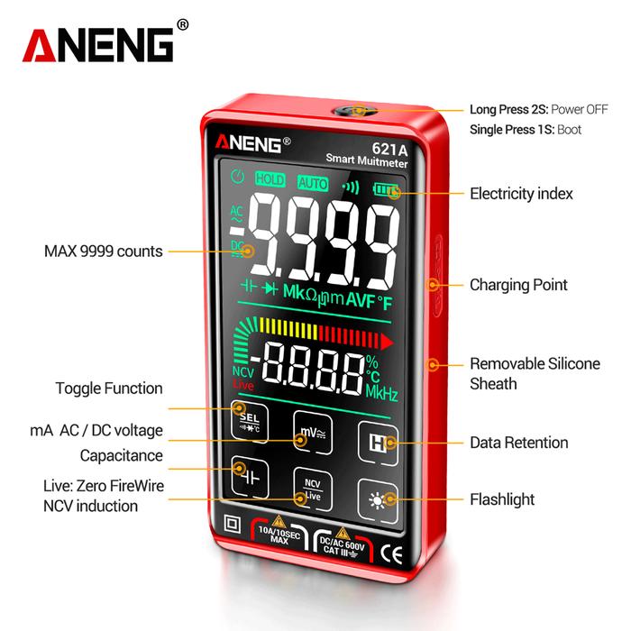 Aneng 621A Multimeter Digital Layar Sentuh True RMS mA DC AC Original