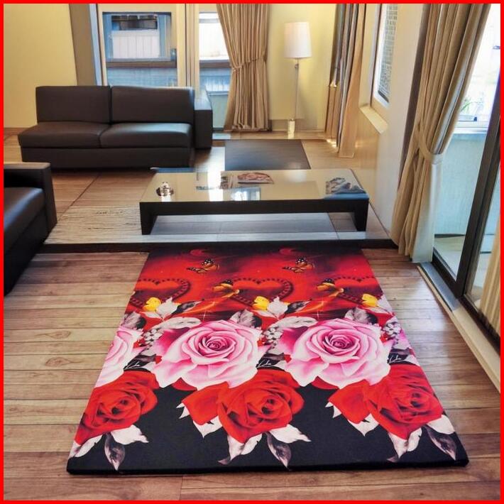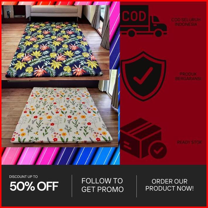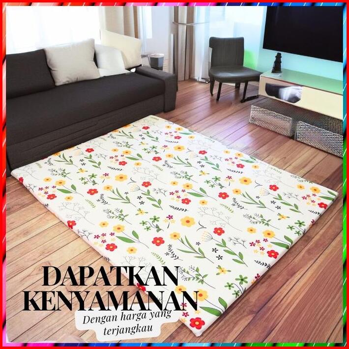 Kasur Karpet Kasur Travel Lantai Motif Bunga Isi Busa Kuning 200x150cm