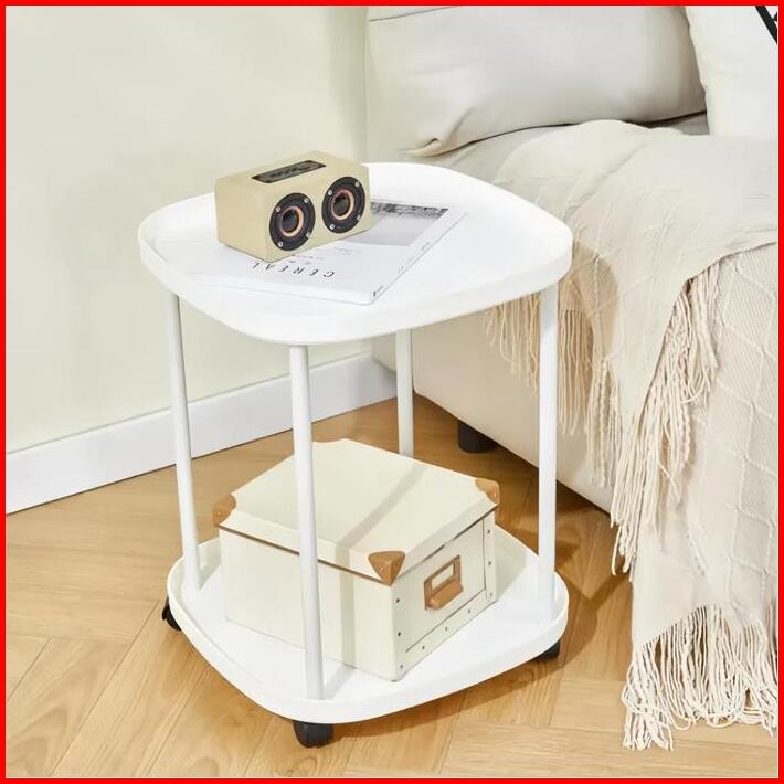 Livinghome Meja Kopi Seluler Rak Makanan Ringan Meja Samping Sofa Dengan Roda Rak Penyimpanan Dua Lapis Plastik