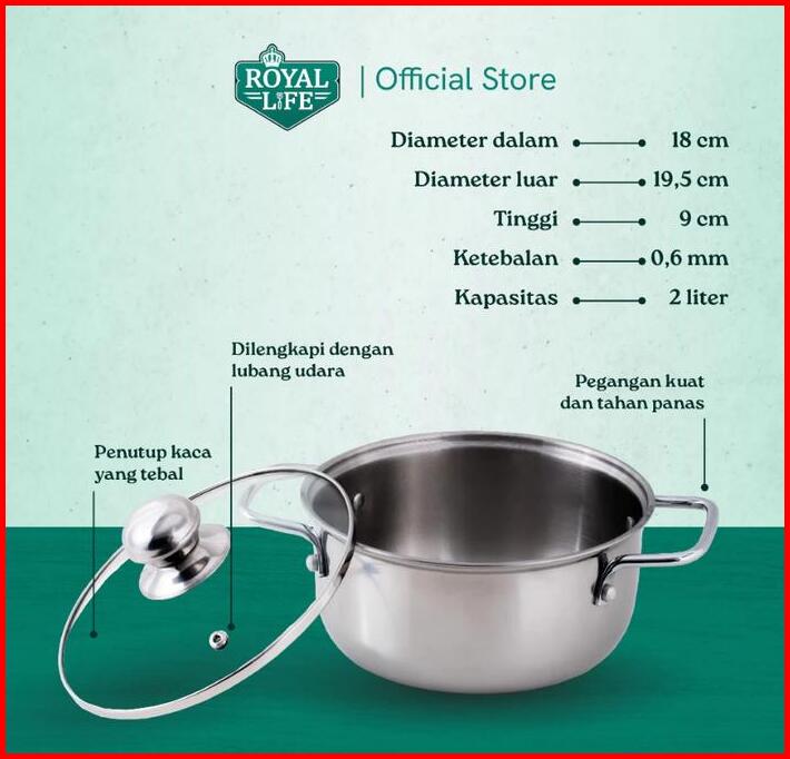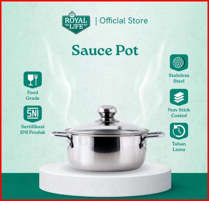 Royal Life Sauce Pot Dutch Oven Panci Masak Stainless Steel Tutup 14 Cm 16 Cm 18 Cm 20 Cm 22 Cm 24 Cm Food Grade