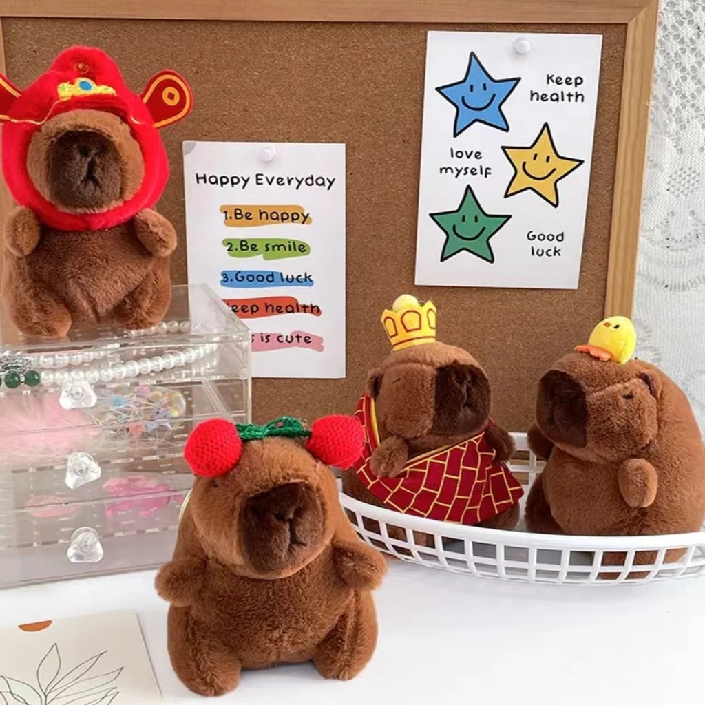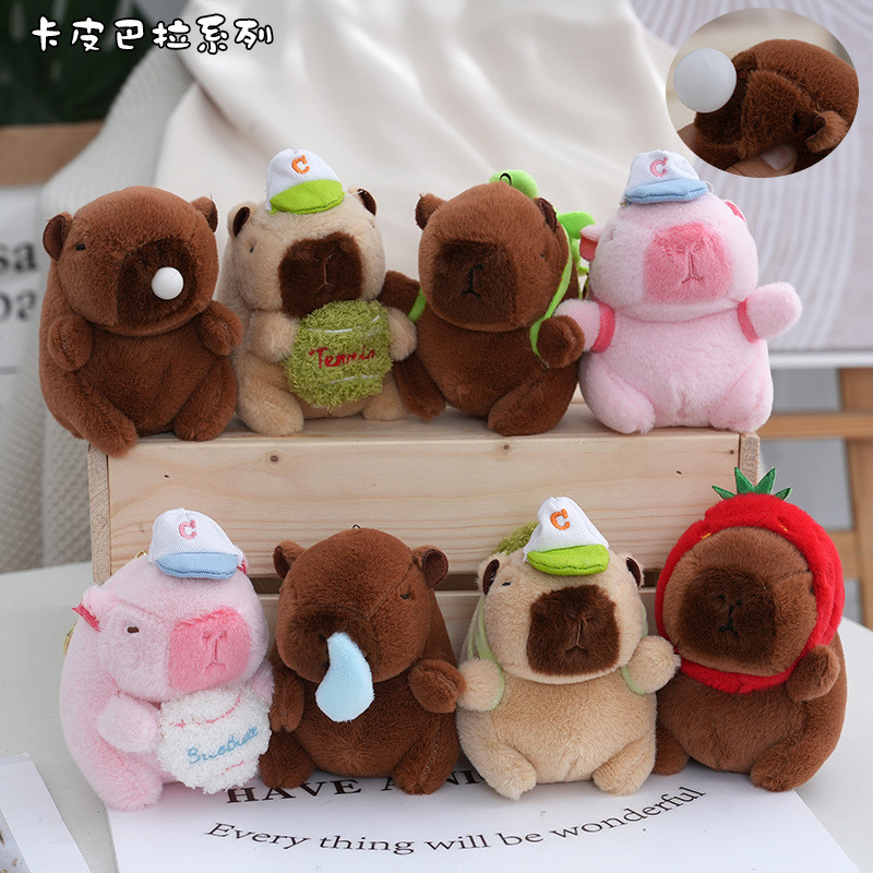 Gantungan unci Capybara Turtle Water Stawberry ing Hamburger Tennis eychain eyring Plush Uni Lucu Hadiah Gift