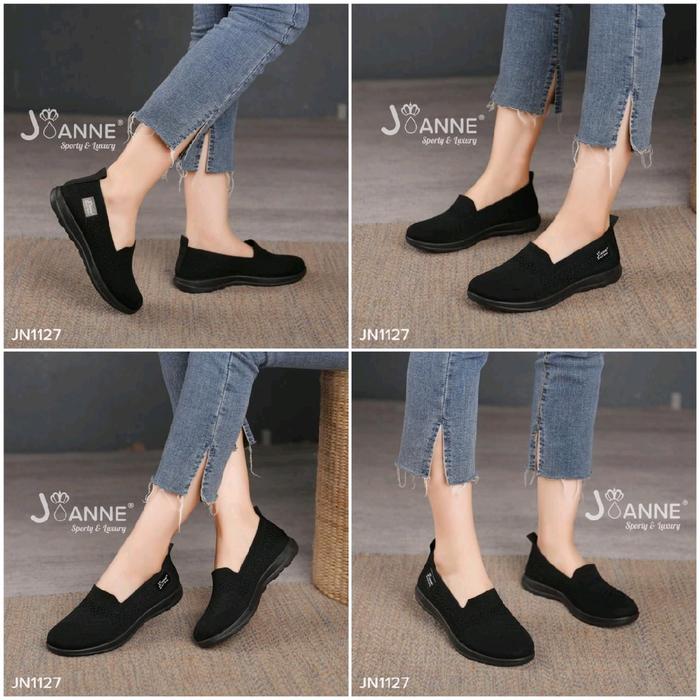 TERLARIS FLYKNIT FLAT SHOESWANITA JN1127 (3PSG 1KG) BLACK PINKBLACK 36