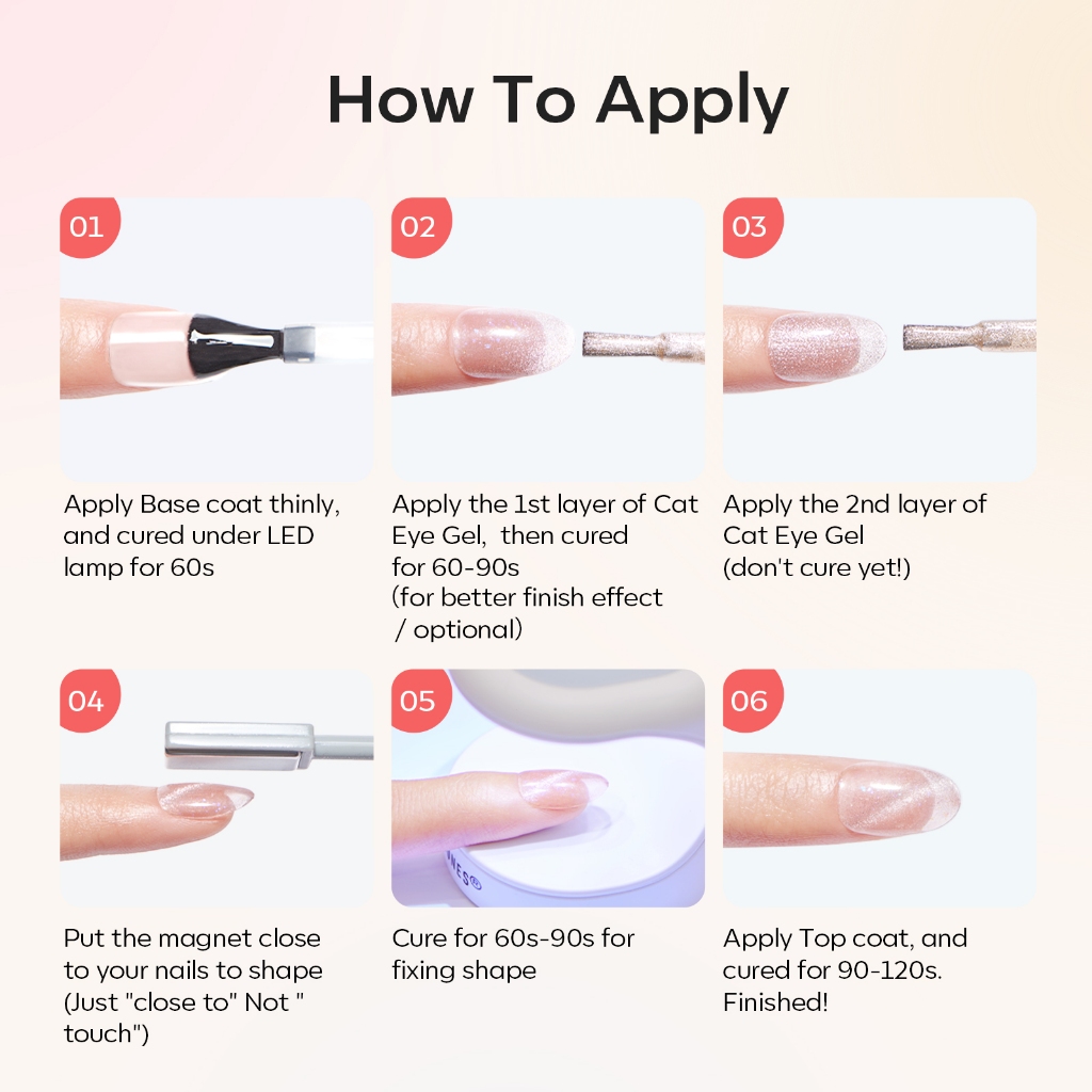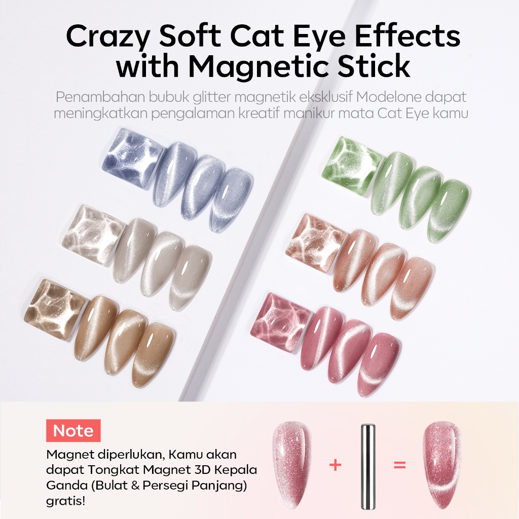FM - MEFA Cat Eye Gel Nail Set Polish, Holographic Glitter 6 Warna dengan Magnet Sparkle Galaxy Series Nude Pink Gel