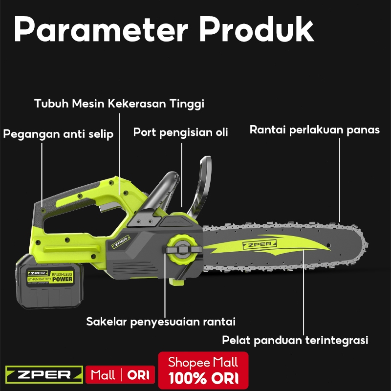 ZPER 1500W Gergaji Kayu Super Tjam Listrik Chainsaw Mesin 12 inch Gergaji Besi Potong Kayu mesin potong stihl mini west
