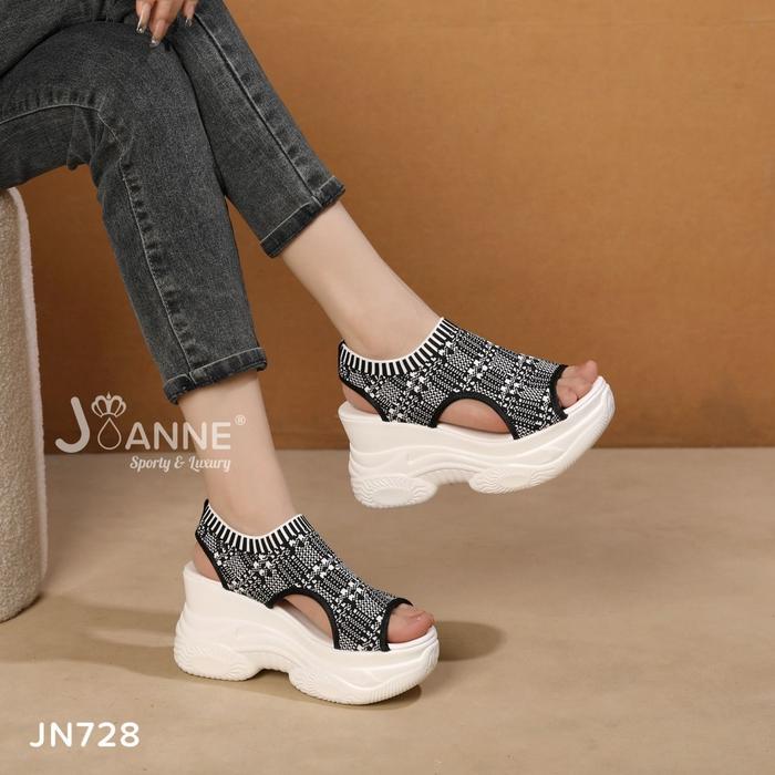 TERLARIS HIGHSOLE WEDGES SANDALS GUNUNG WANITA JN728 BLACKWHITE 36