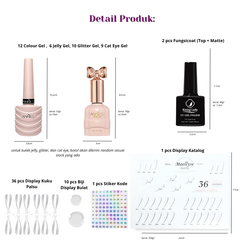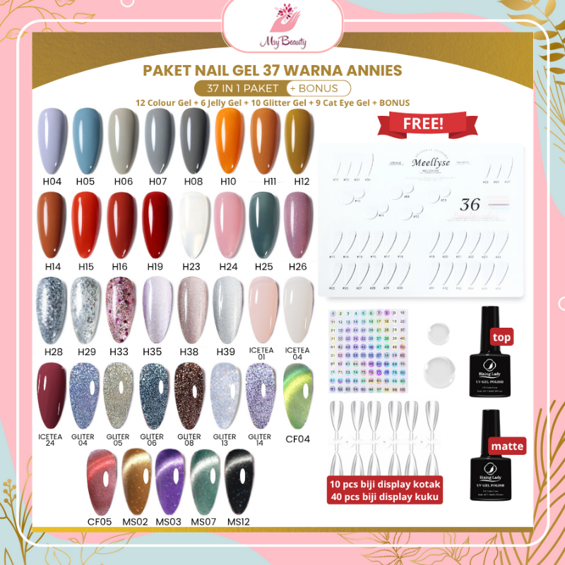 MSY Paket Annies Kutek Gel 37 Warna Lengkap Free Display Katalog Fungsicoat / Kutek Gel Warna Jelly Cateye Glitter UV LE