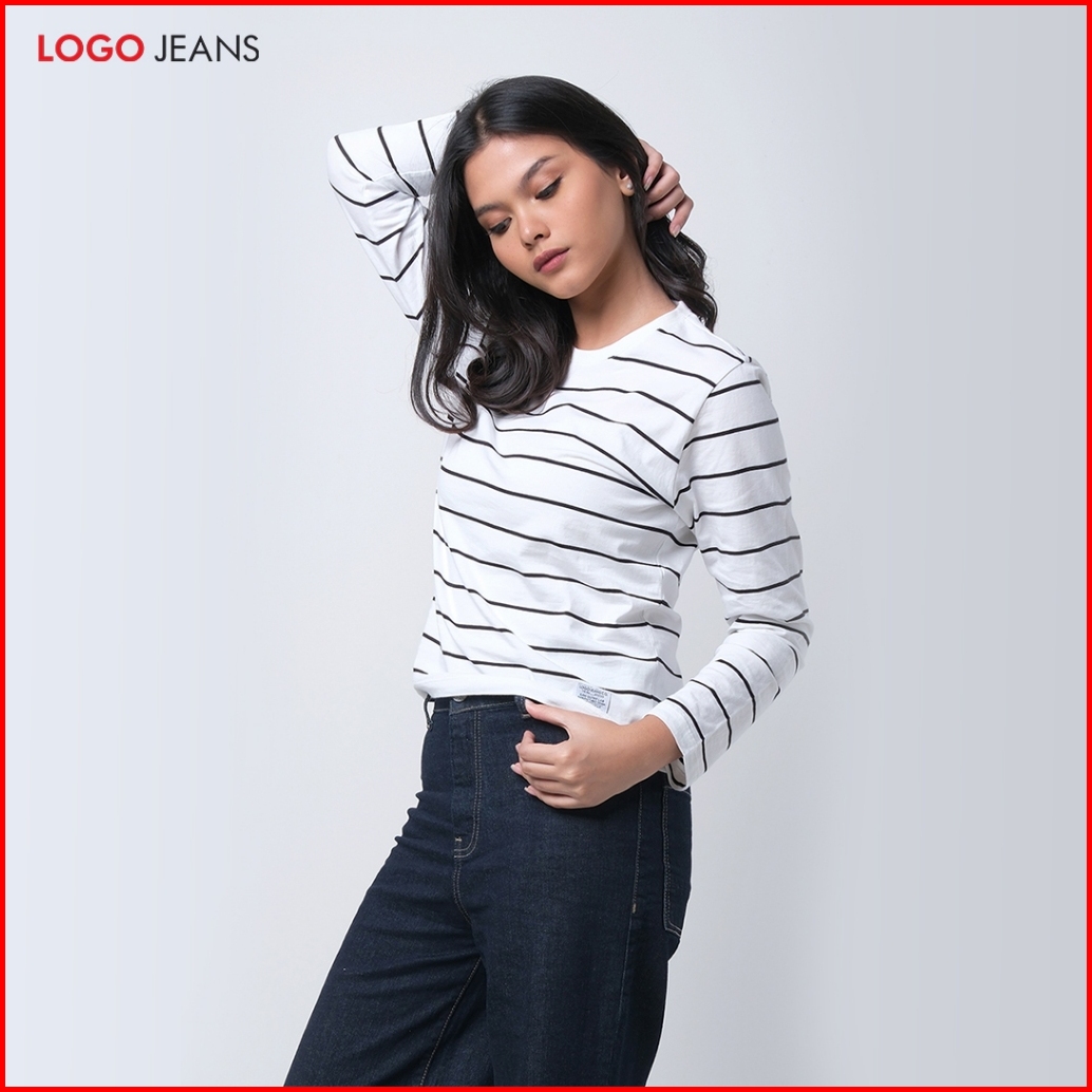 Logo Jeans Kaos Wanita Felysia Offwhite Black Stripe 14858l4oh