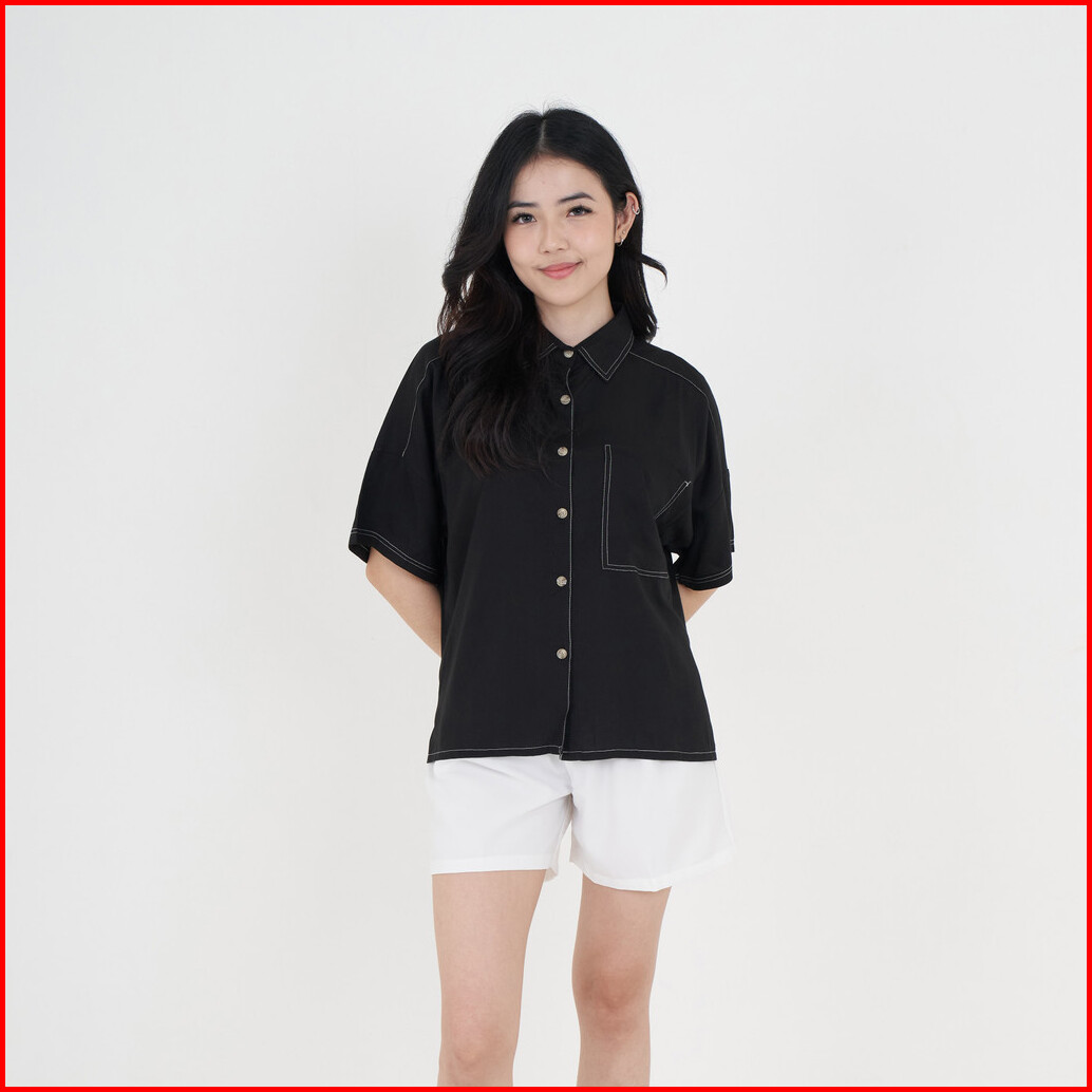 Queentin Kemeja Wanita Casual 0624 Katun Tenzel Primacool Polos Lengan Pendek