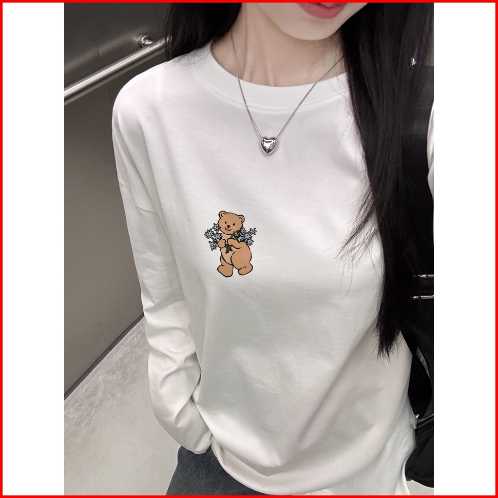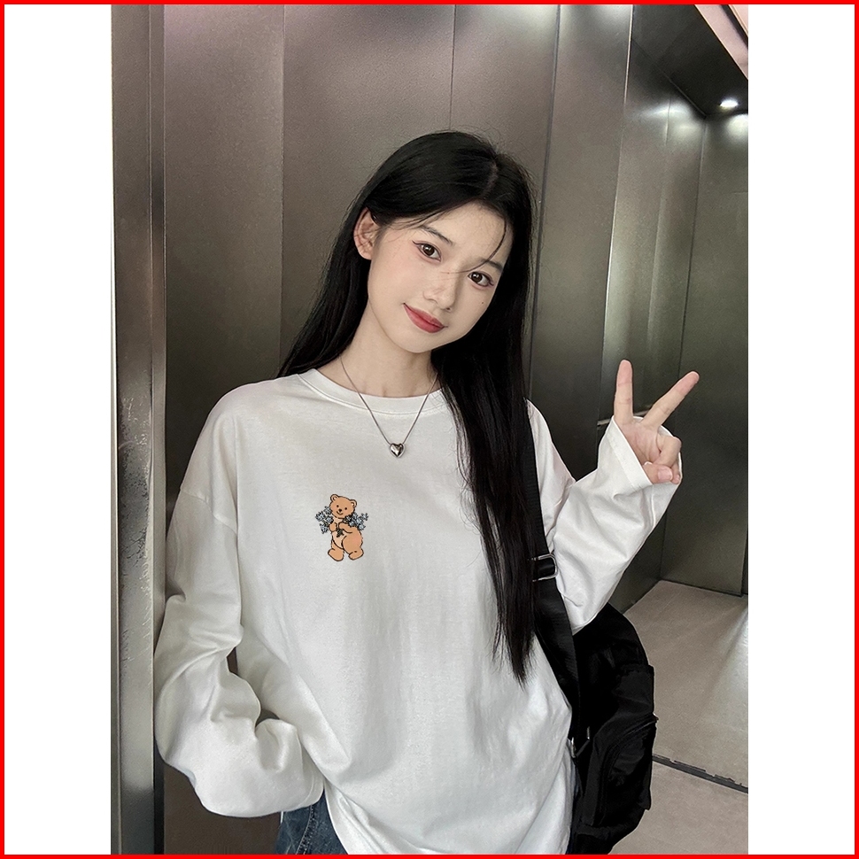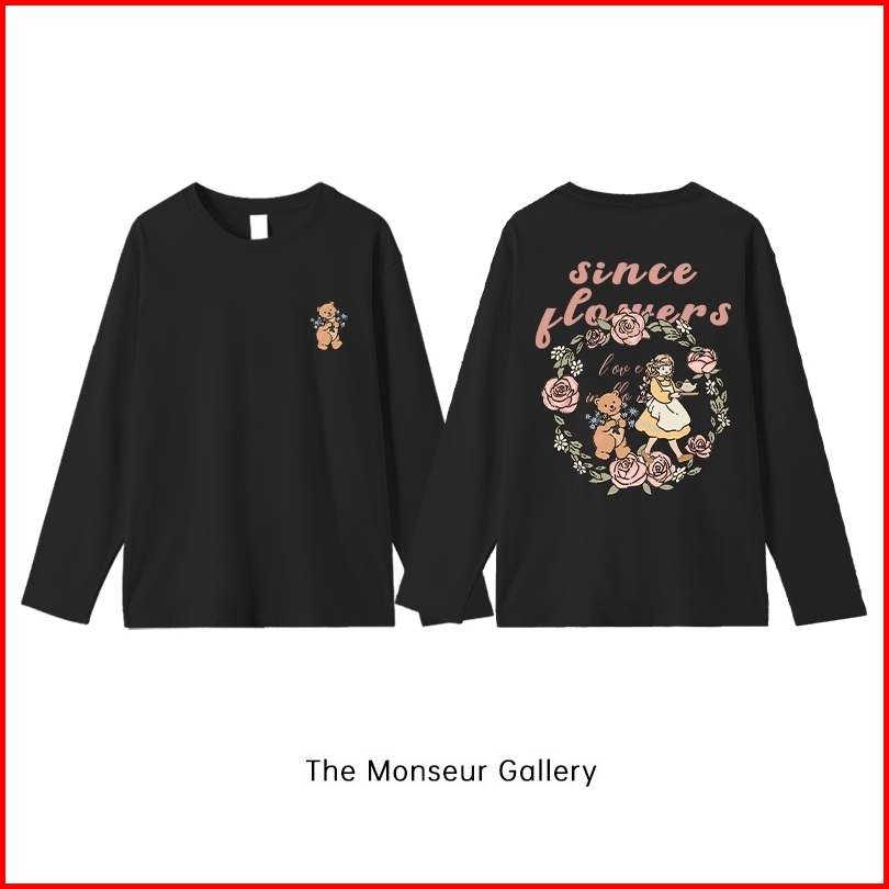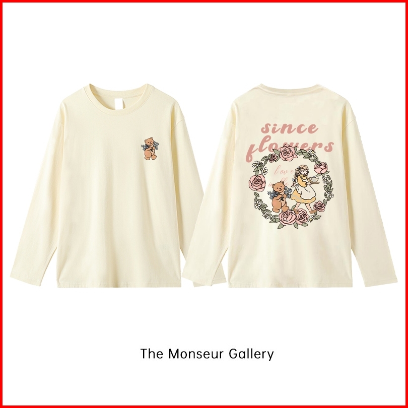 The Monseur Gallery Baju Kaos Wanita Lengan Panjang Kaos Oversize Wanita Baju Atasan Wanita Flower Fairy And Bear Kaos W
