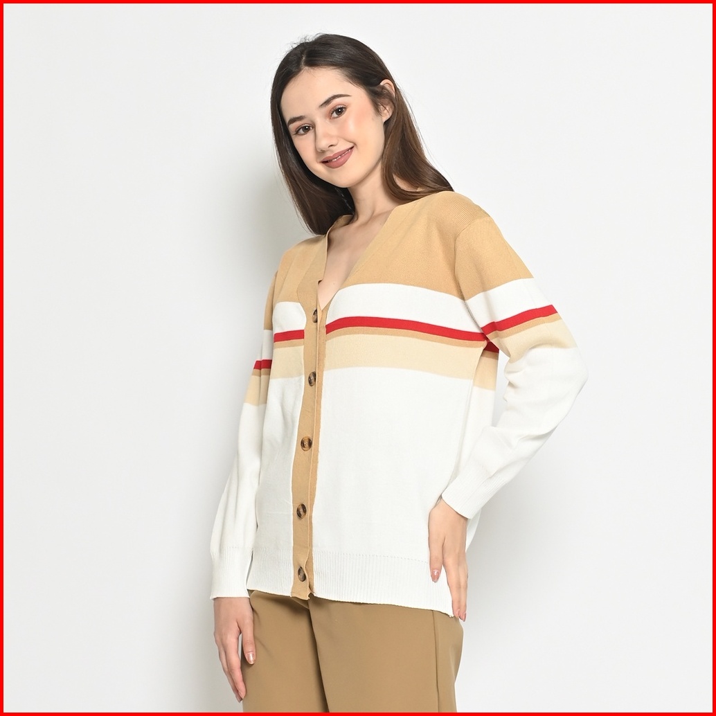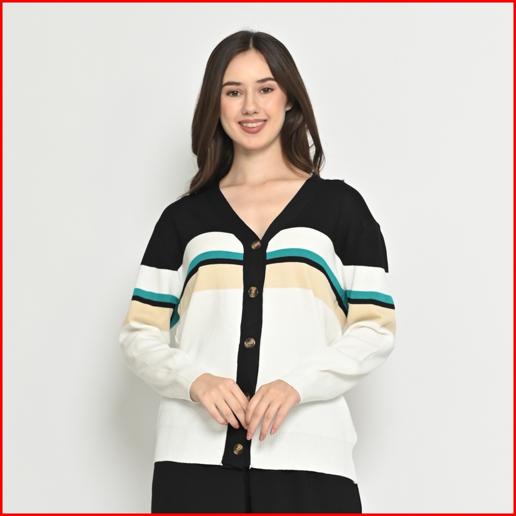 Queentin Cardigan Casual Wanita 212 Rajut Knit Strecth Multi Colour Striped Lengan Panjang