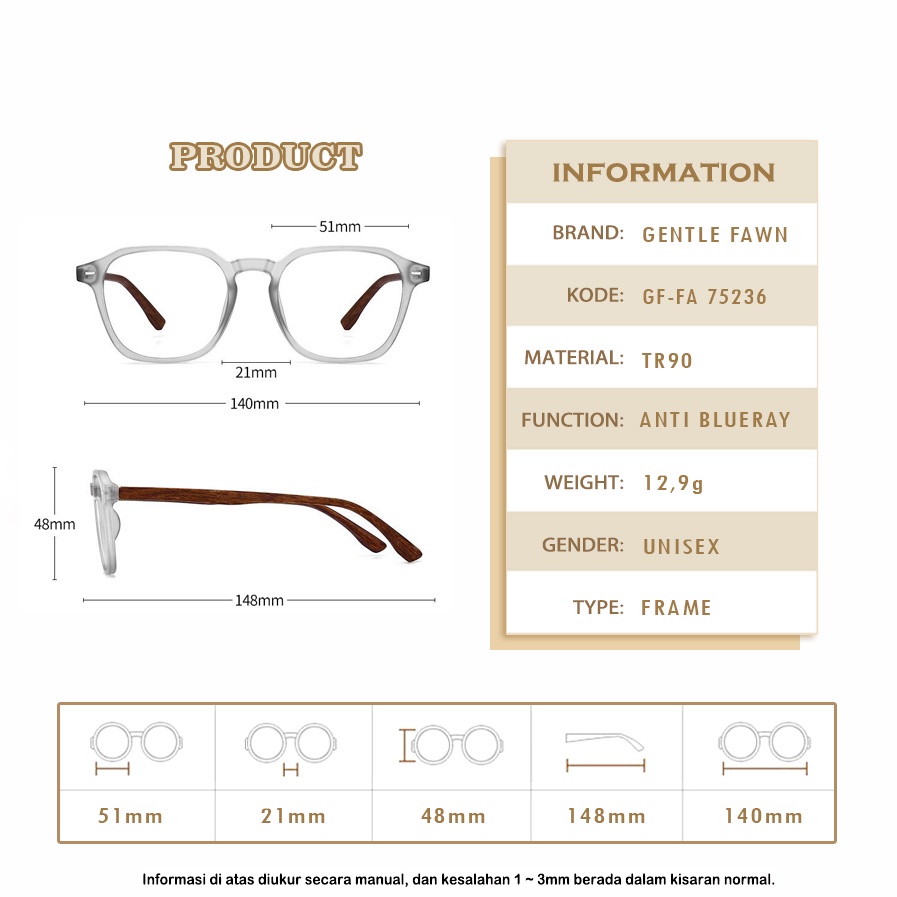 Gentle Fawn Kacamata Anti Radiasi Blueray Bentuk Kotak TR90 Simple Unisex Bisa Minus Antiradiasi/Blueray/Photocromic/Bluecromic