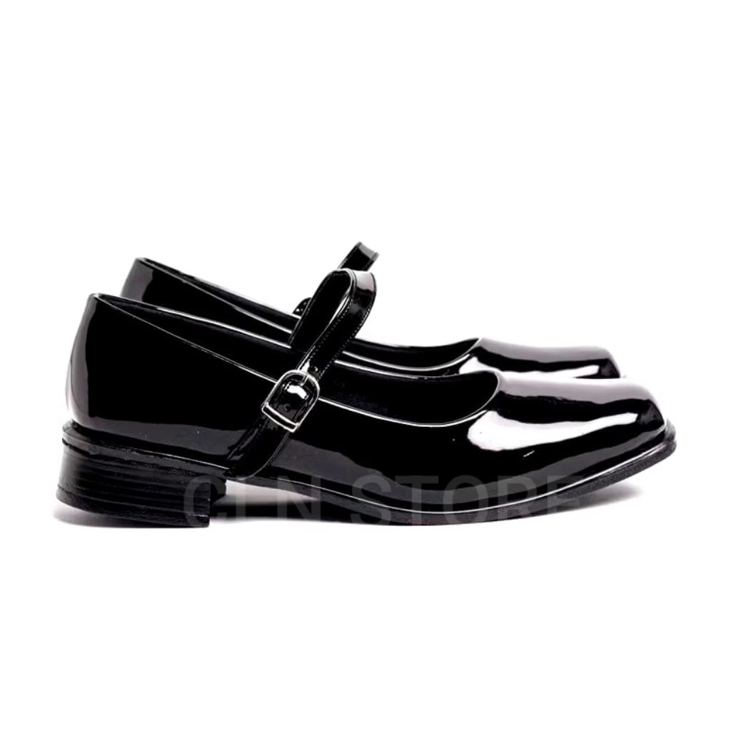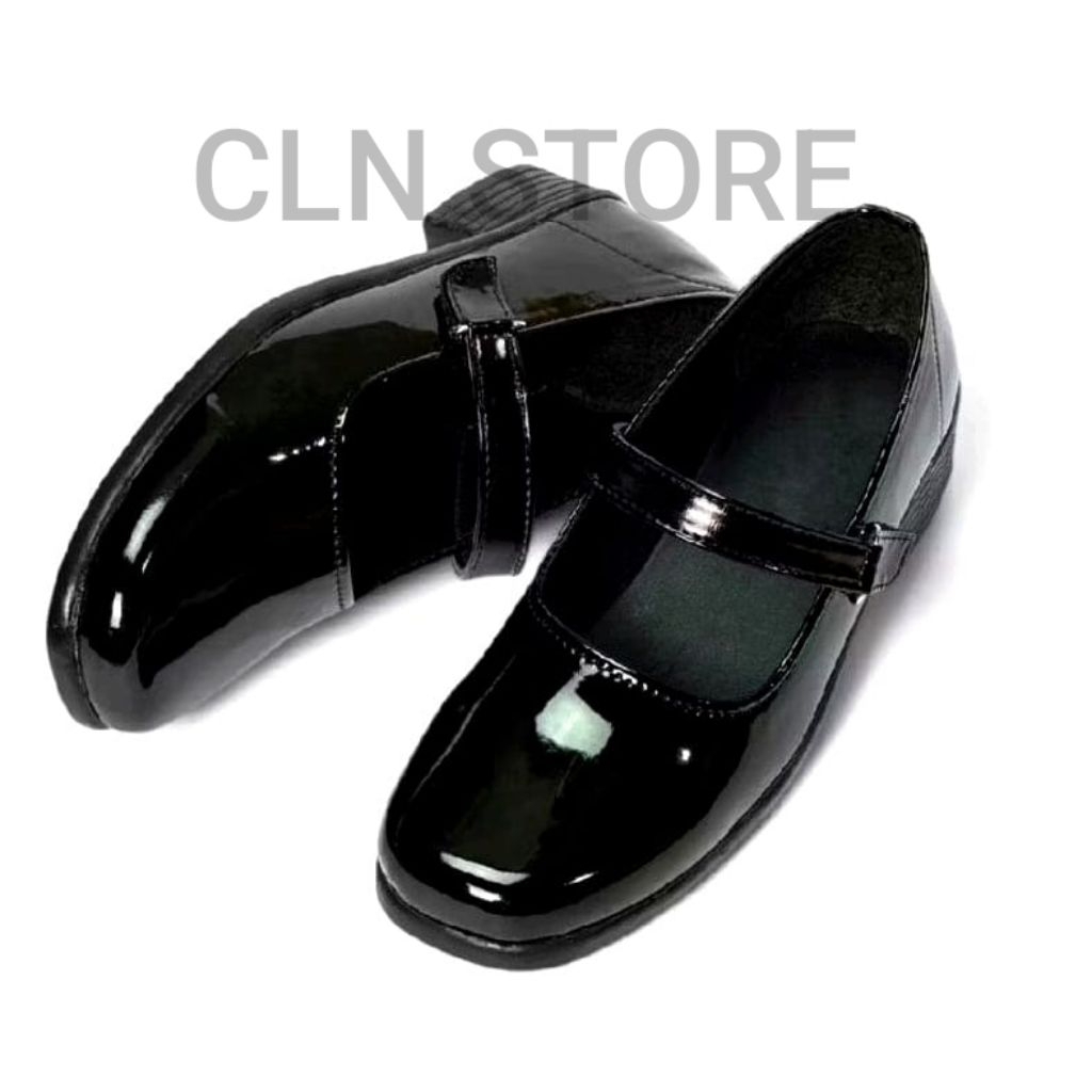 Sepatu Wanita Pantofel Hitam Polos Sepatu Sekolah Slip on Hak 3 cm