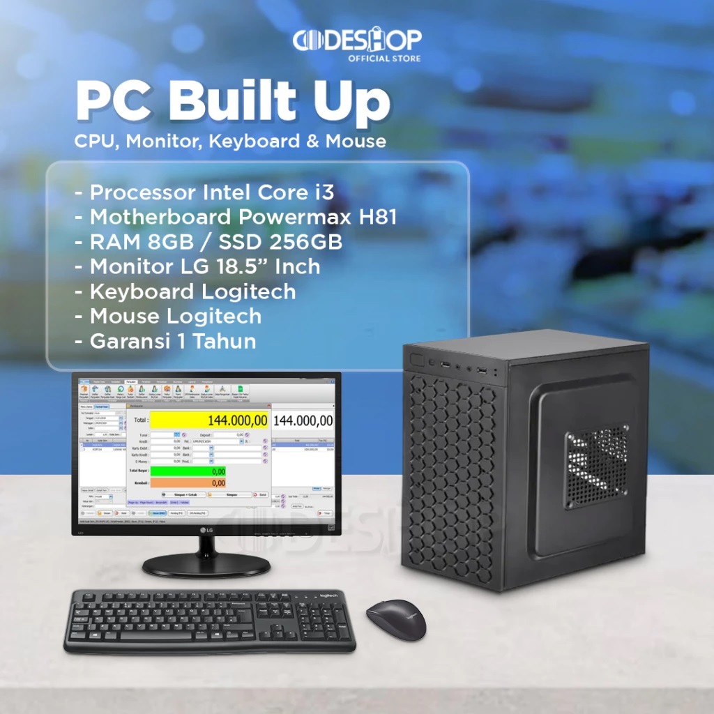 Komputer Kasir Paket PC Rakitan CPU Intel Core i3 RAM 8GB SSD 256GB LED LG Program IPOS 4