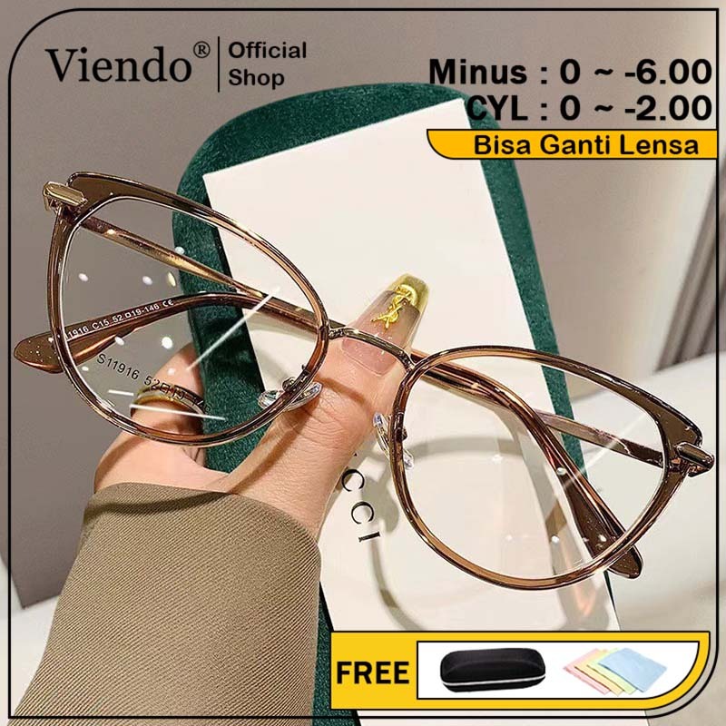 Viendo Kacamata Minus Photocromic Anti Radiasi Blueray Cylinder Wanita Cat Eye Frame Kaca Mata Optik