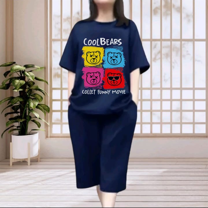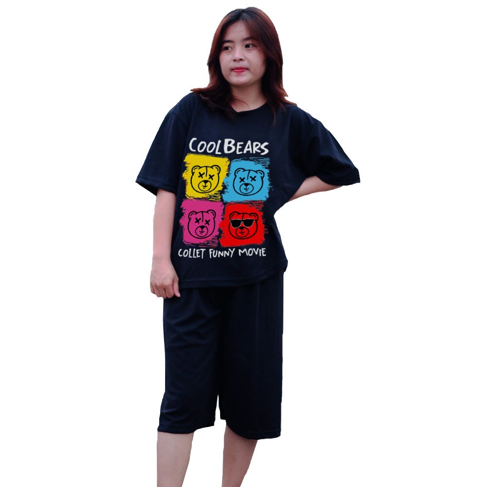 Cilla - GROSIR Setelan celana kulot 3/4 Baju dewasa wanita sablon DTF Ukuran M L XL JUMBO Cool Bear