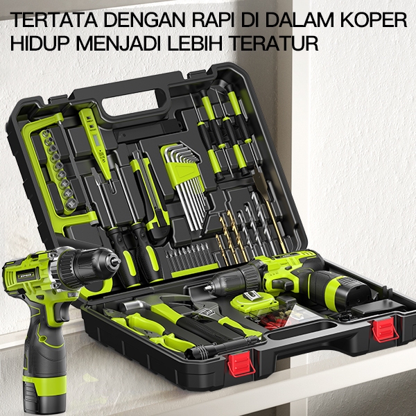 ZPER Satu Set Alat Perkakas Bor Listrik Cordless Tang Obeng Palu Kunci Pas Toolkit 124 in1 pcs ZP027