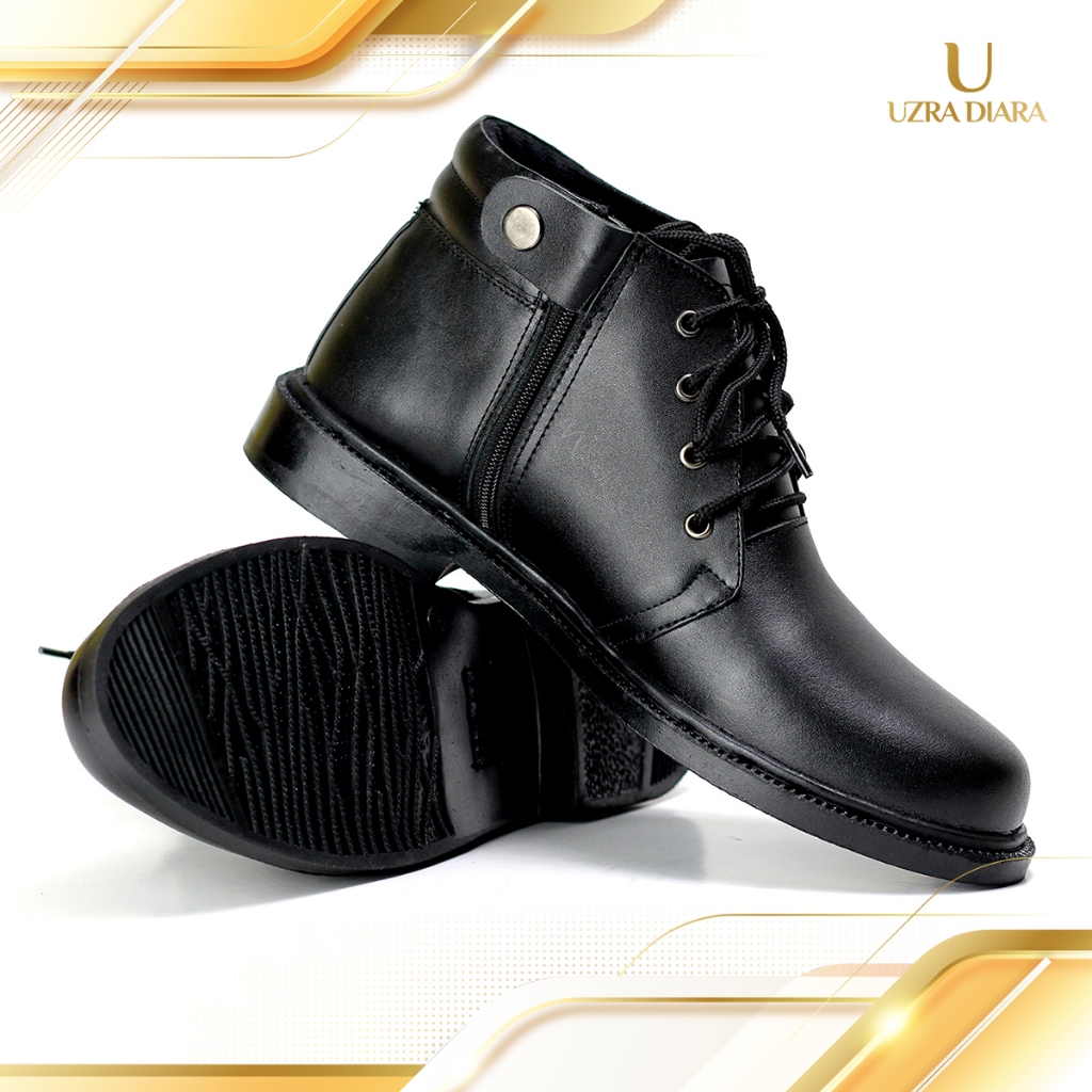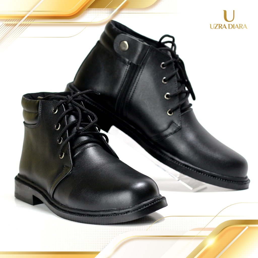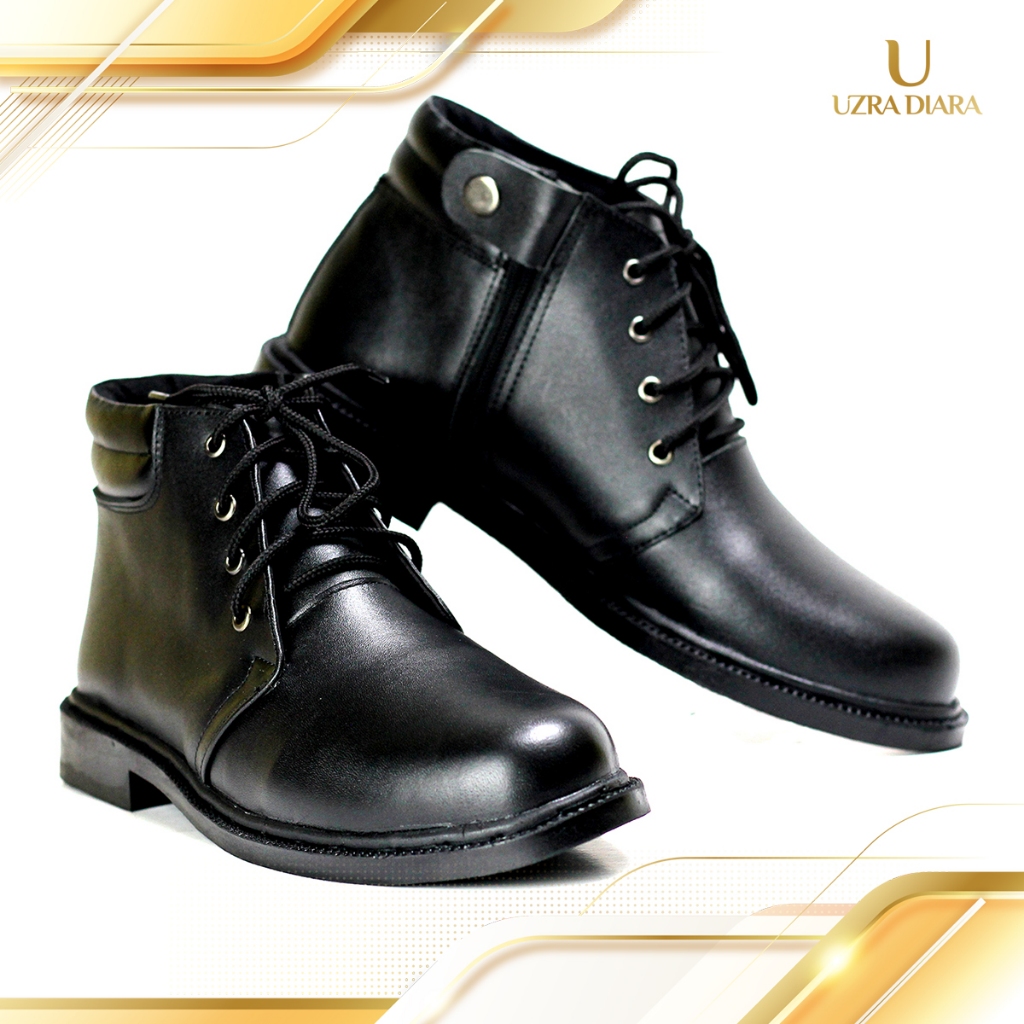 Sepatu PDH Pria Kerja Warna Doff Tali Resliting Samping Fantofel Satpam Security Polri TNI sol karet