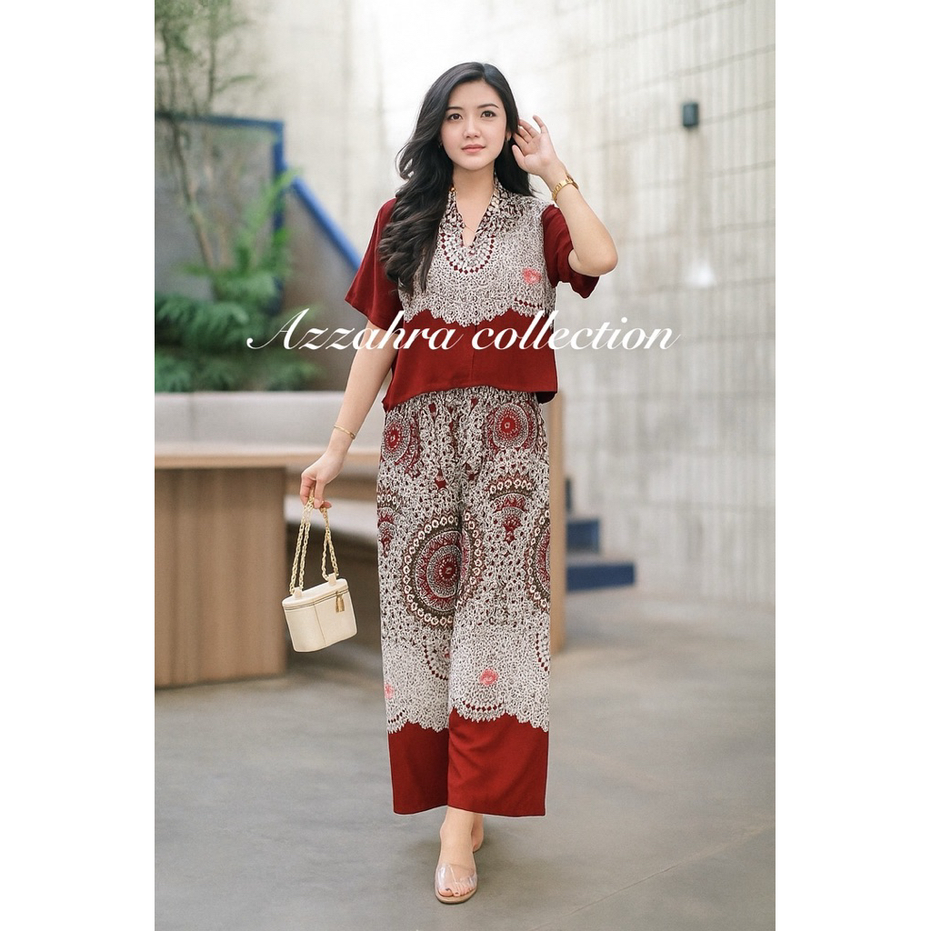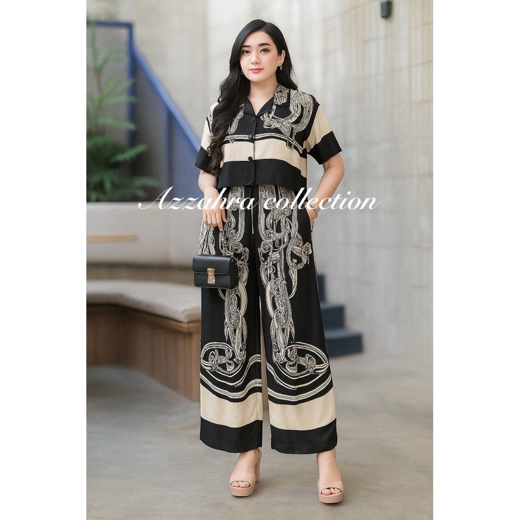 One set wanita kekinian / one Set Crop Setelan Celana Kulot Hightwaist / one set katun rayon premium