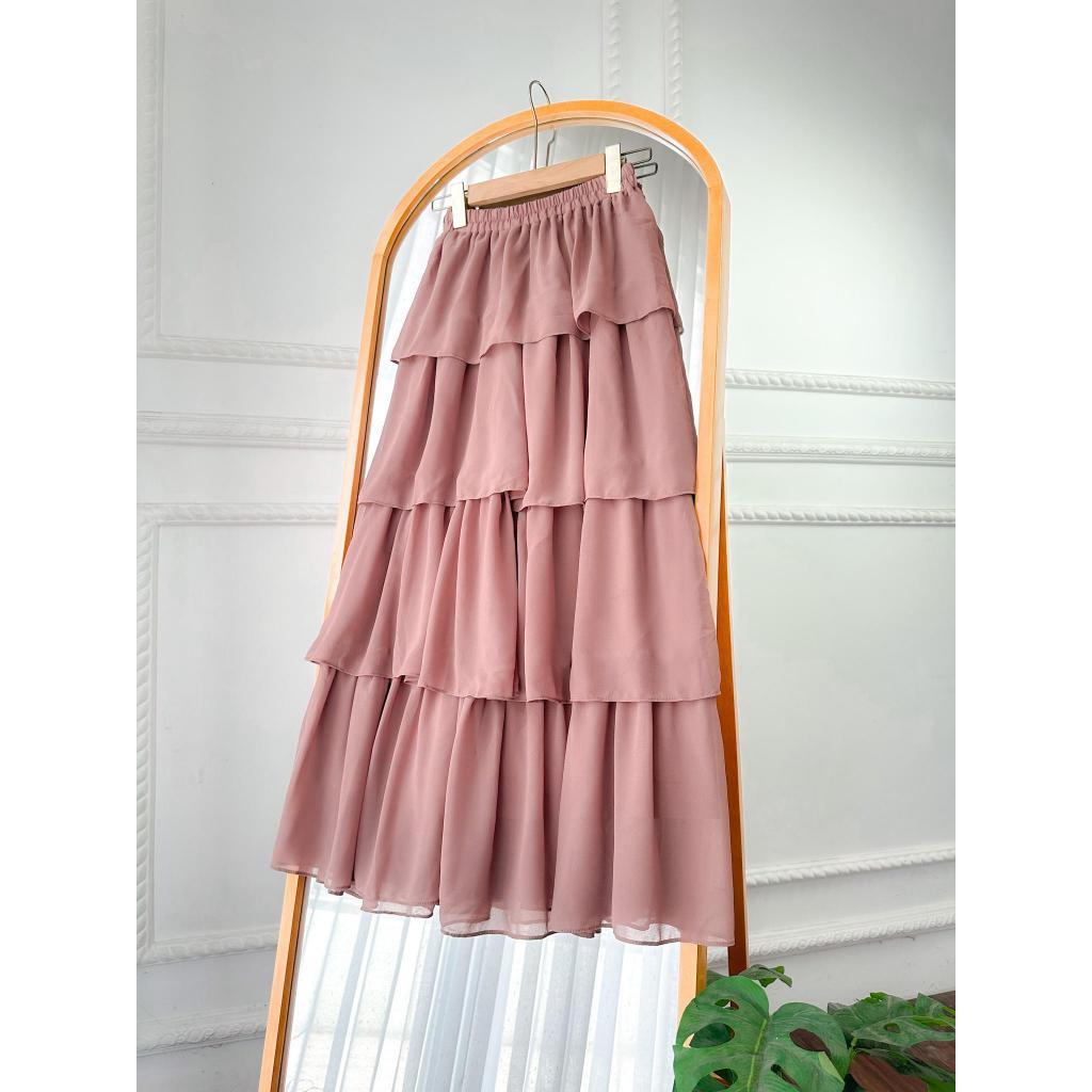 HEIDI ROK CERUTY SUSUN EMPAT 4 MAXI SKIRT RUFLA RUFFLE REMPEL FULL MIDI TERMURAH EKSKLUSIF PROMOSI DISKON BTCSOLO CERUTI
