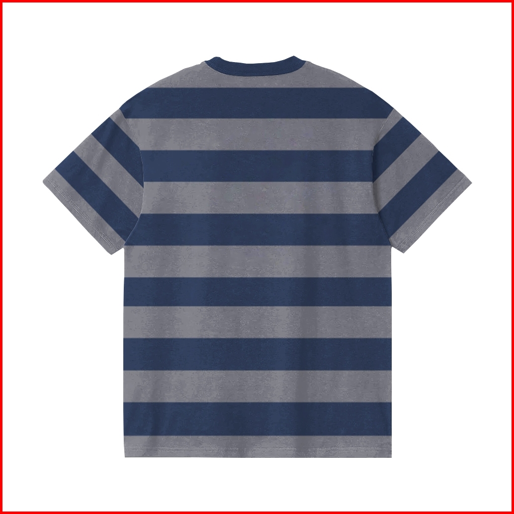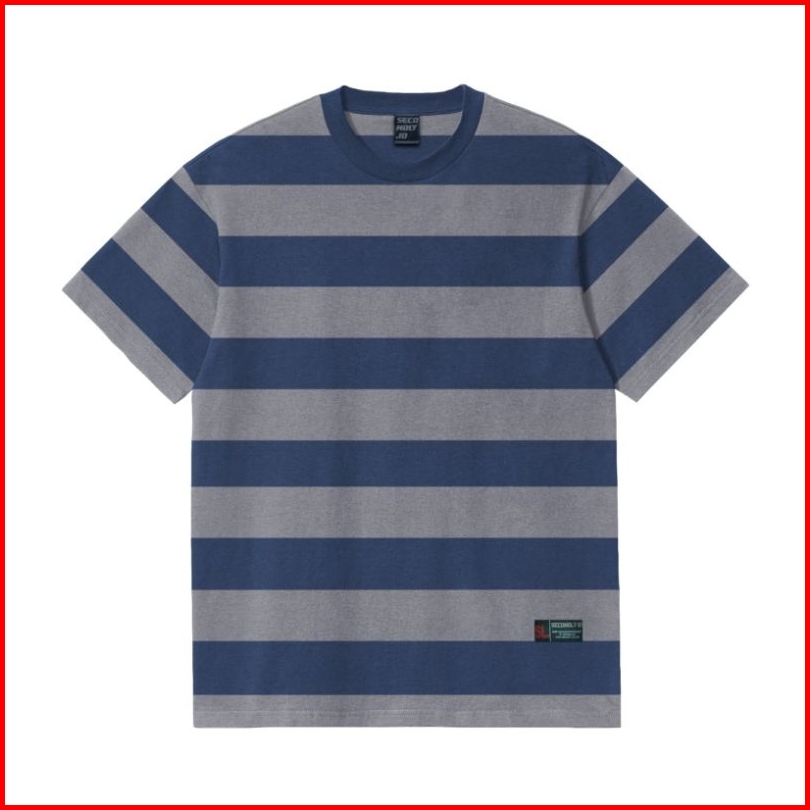Secondly.id - Kaos Salur Garis Besar Lengan Pendek Jumbo Tshirt Big Stripe Abu Navy 24s