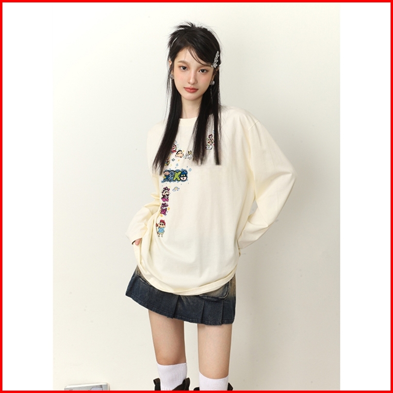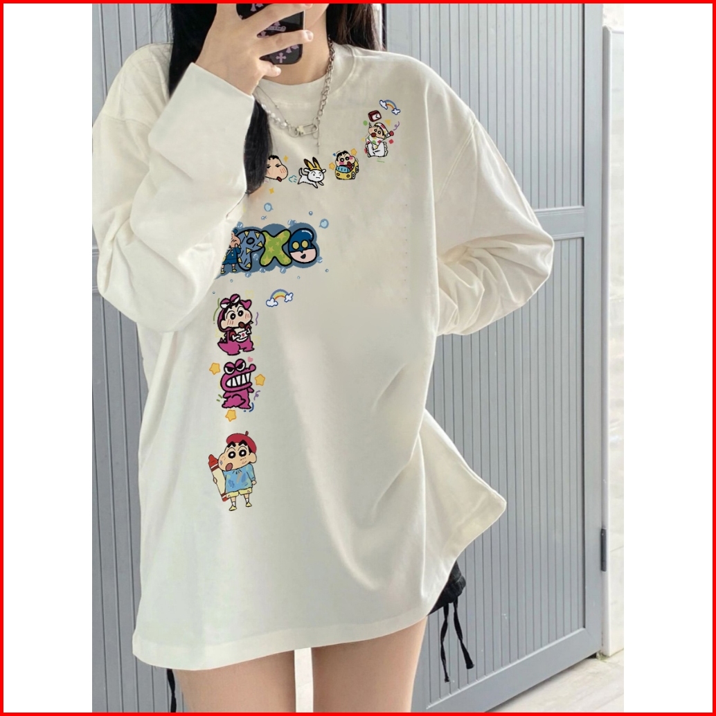 The Monseur Gallery Baju Kaos Wanita Lengan Panjang Kaos Oversize Wanita Baju Atasan Wanita Cute Crayon Shinchan Kaos
