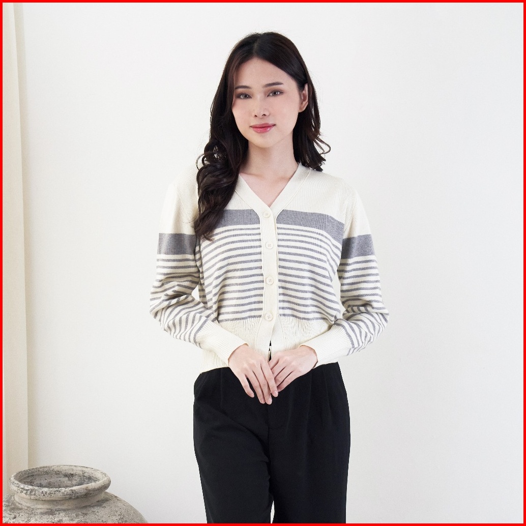Queentin Cardigan Wanita Rajut 413 Mix Knit Motif Salur Lengan Panjang