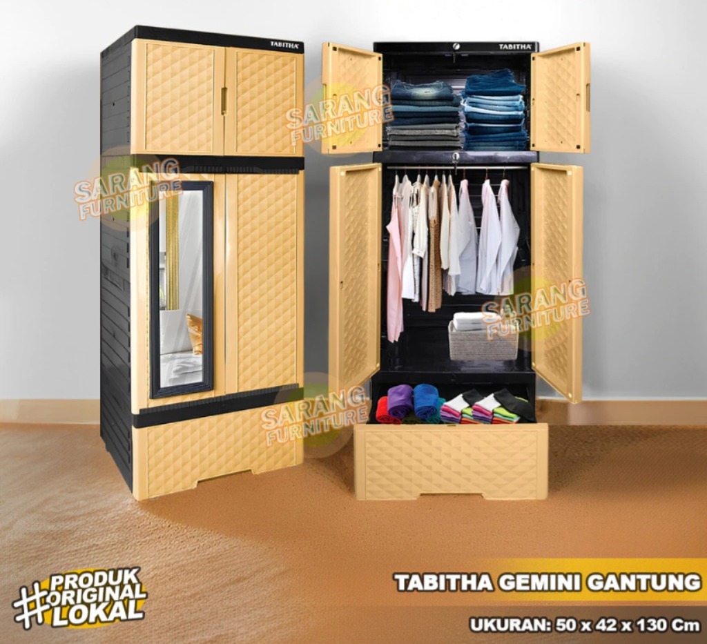 Lemari - lemari pakaian - rak baju - Lemari Minimalis Pakaian Lemari Plastik Lemari Gantung Serbaguna Laci & Cermin