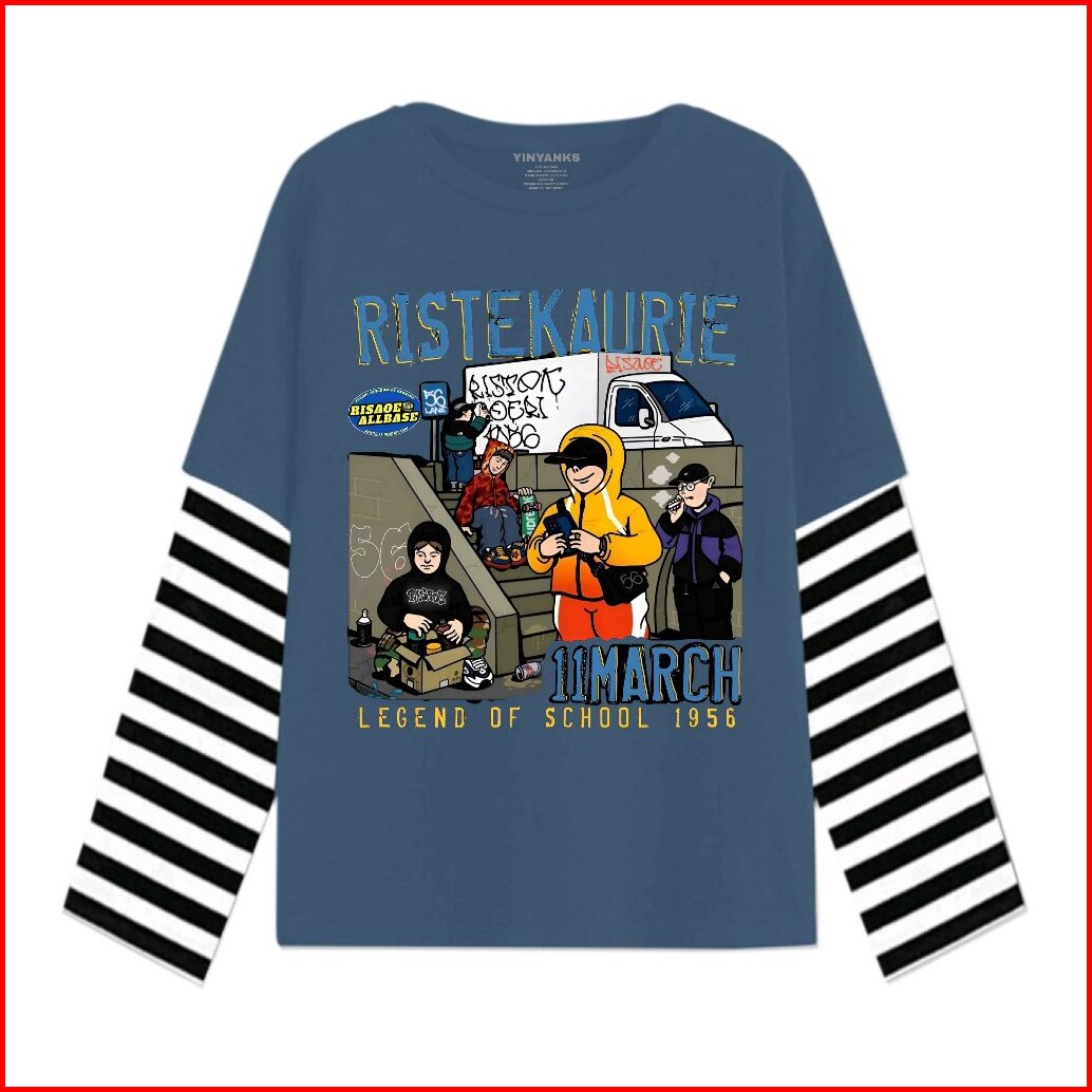 Yinyanks T-shirt Double Layer Ristekaurie 11march Kaos Long Sleeve Pria Wanita