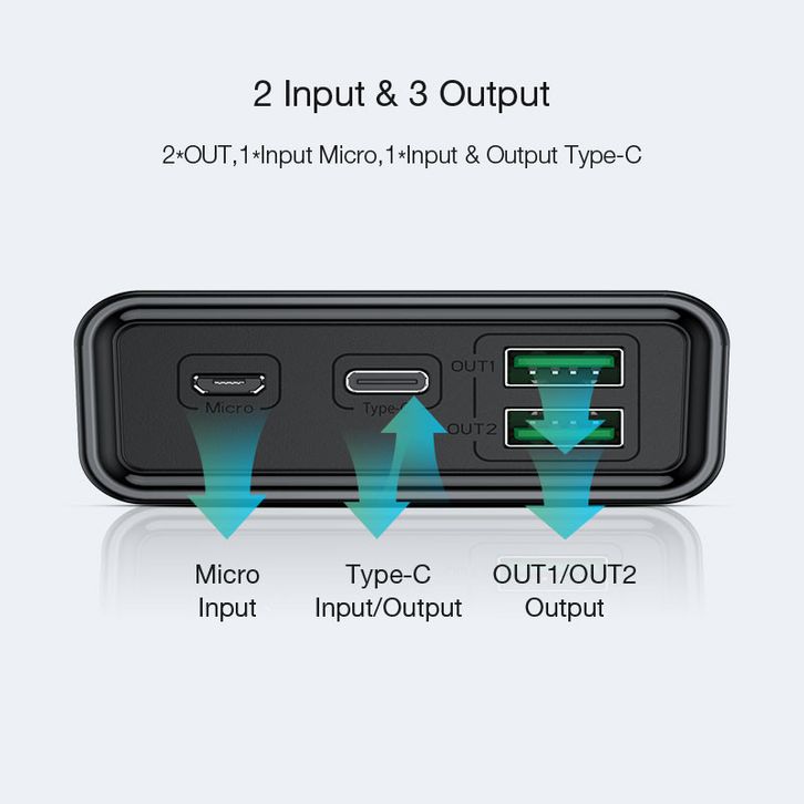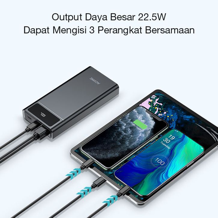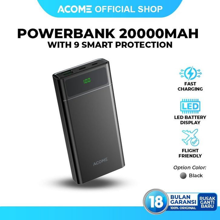 ACOME Powerbank 20000mAh AP201 Fast Charging LED Display Dual Input & Three Output Original - Garansi Resmi 18 Bulan