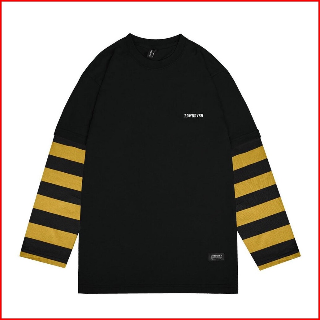 Rown Division Double Sleeve - Rowndvsn Kaos Double Layer Coaster Black Yellow Striped