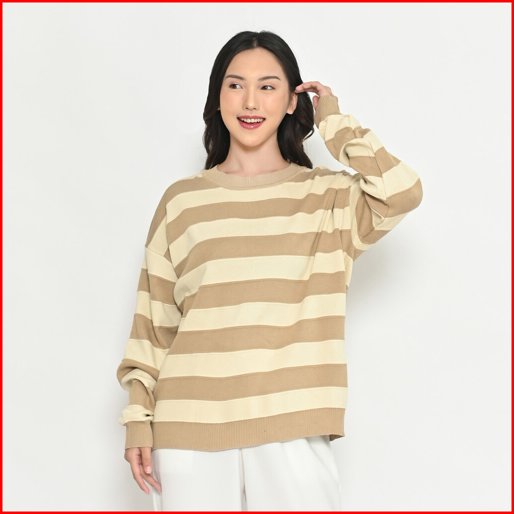 Queentin Sweater Wanita Rajut 5042 Viscose Polyamide Knit Motif Salur Lengan Panjang