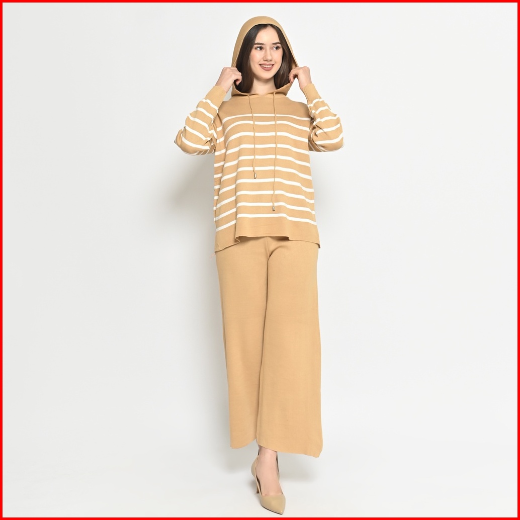 Queentin Sweater Hoodie Set Wanita 22193 Rajut Knit Striped Stretch Premium Lengan Panjang