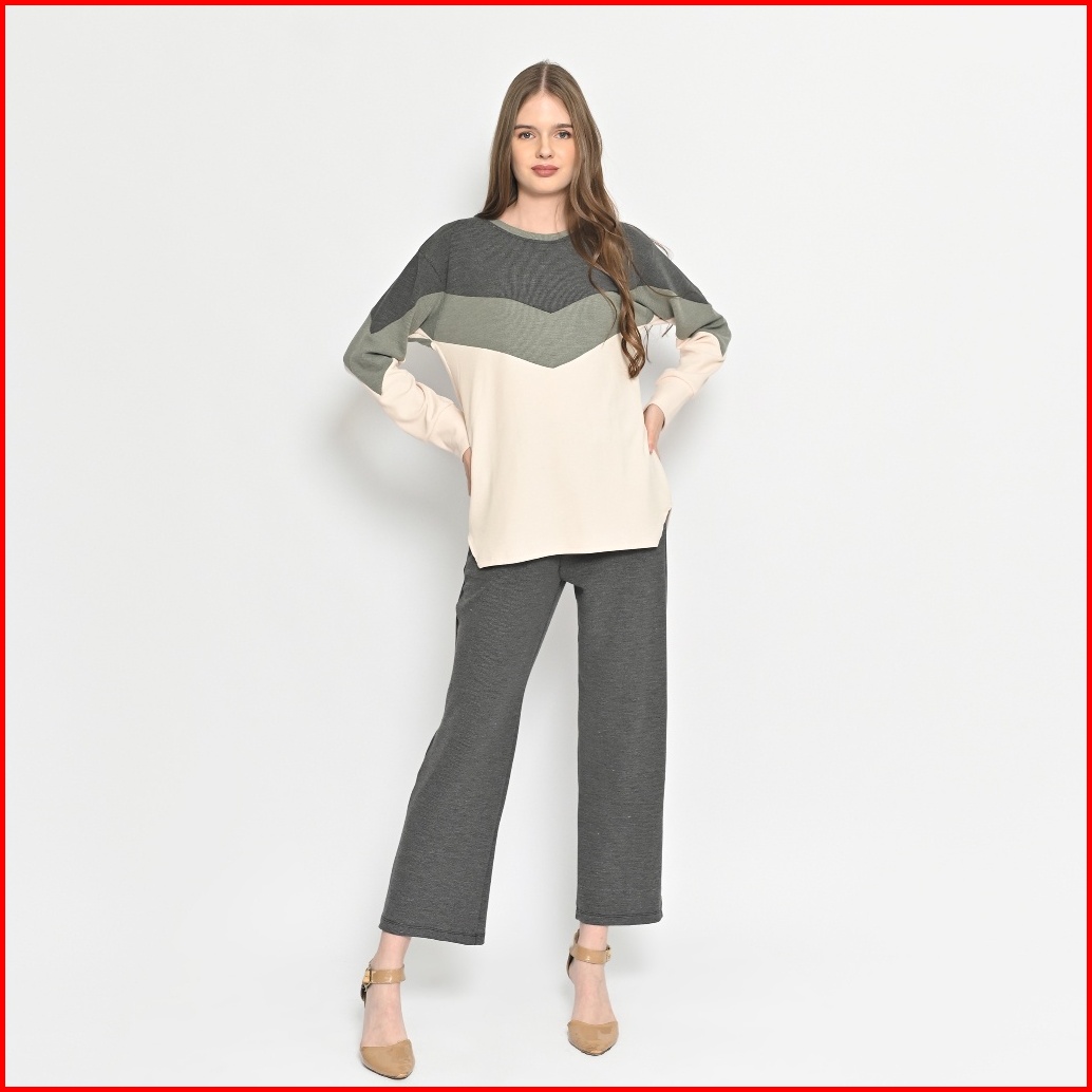Queentin One-set 0311 Setelan Wanita Rib Knit Stretch Polos Kombinasi Premium Lengan Panjang