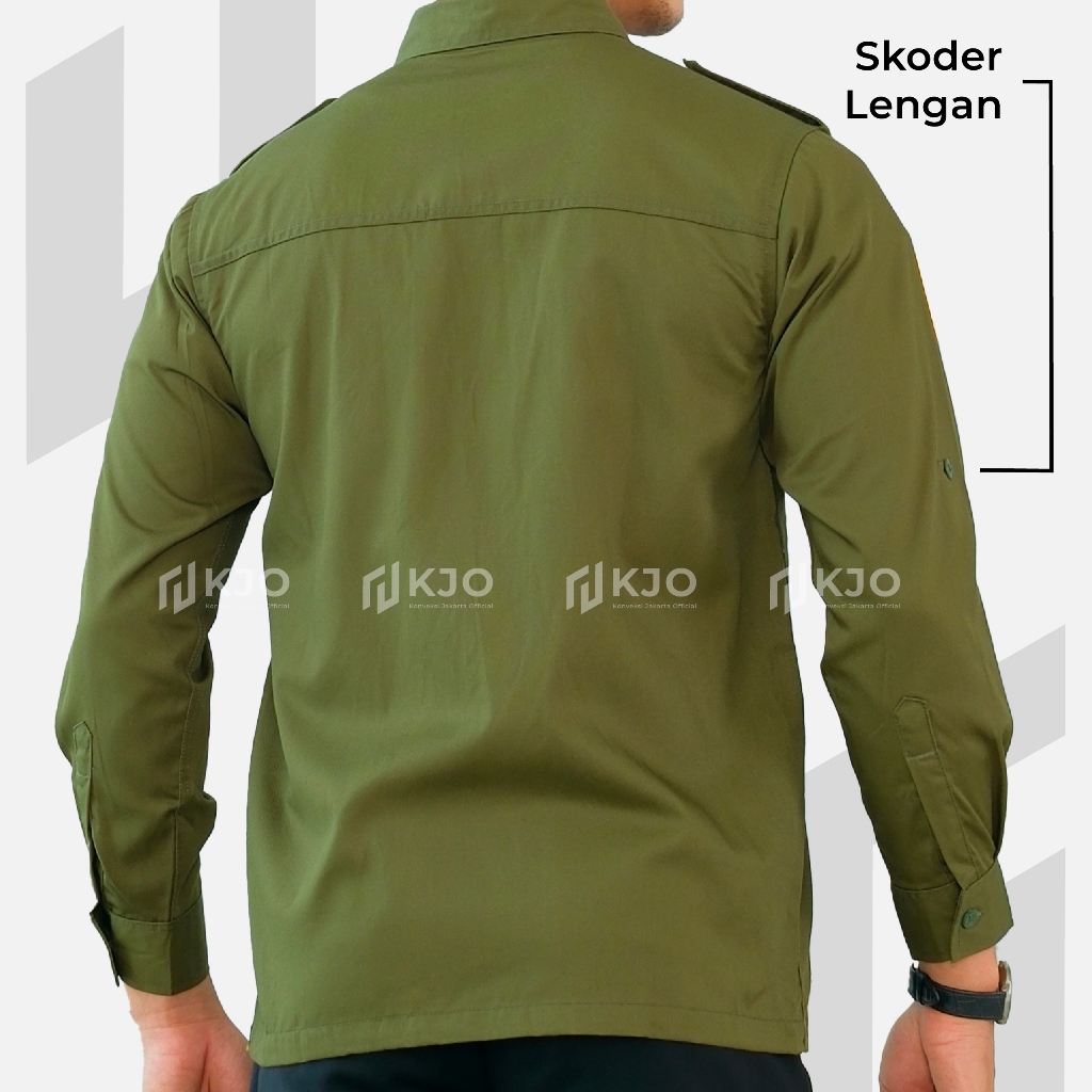 Baju Kemeja Pdl Lengan Panjang Pria - Seragam Pakaian Kerja Dinas Lapangan Outdoor Gunung Warna Hijau Army - Konveksi Ja