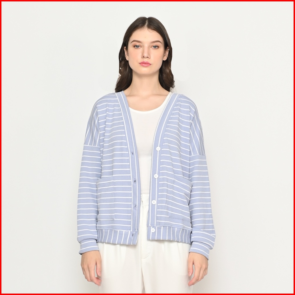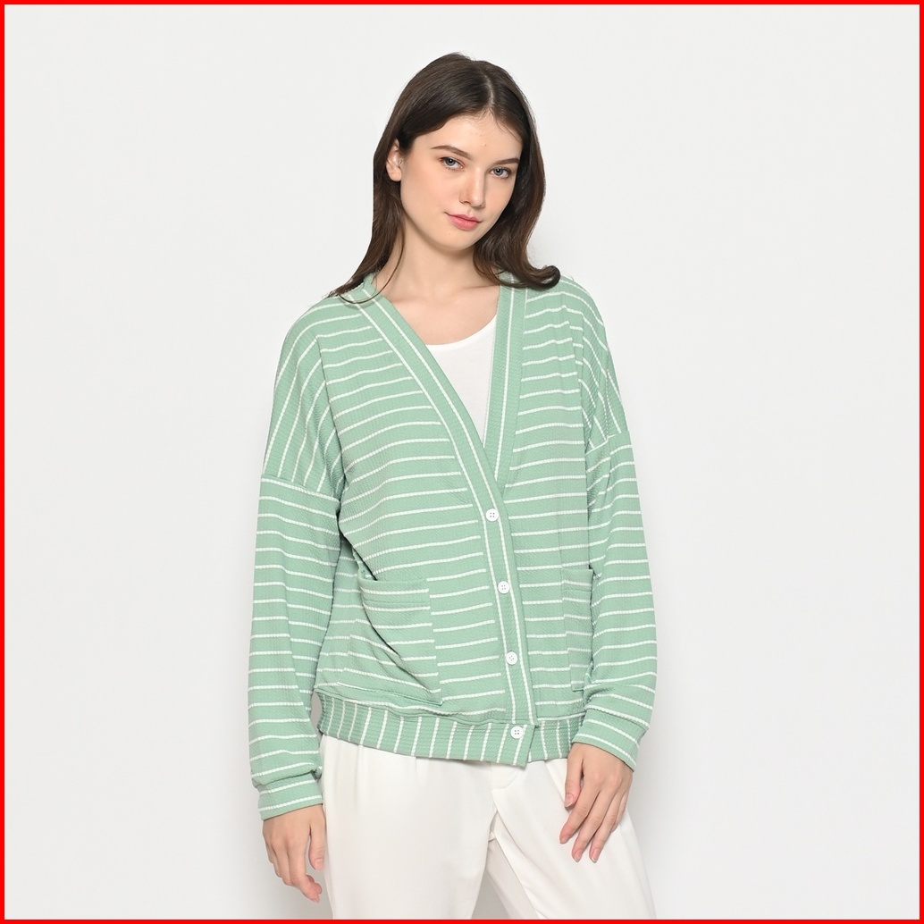 Queentin Cardigan Casual Wanita 0360 Knit Aiko Stretch Mini Salur Lengan Panjang