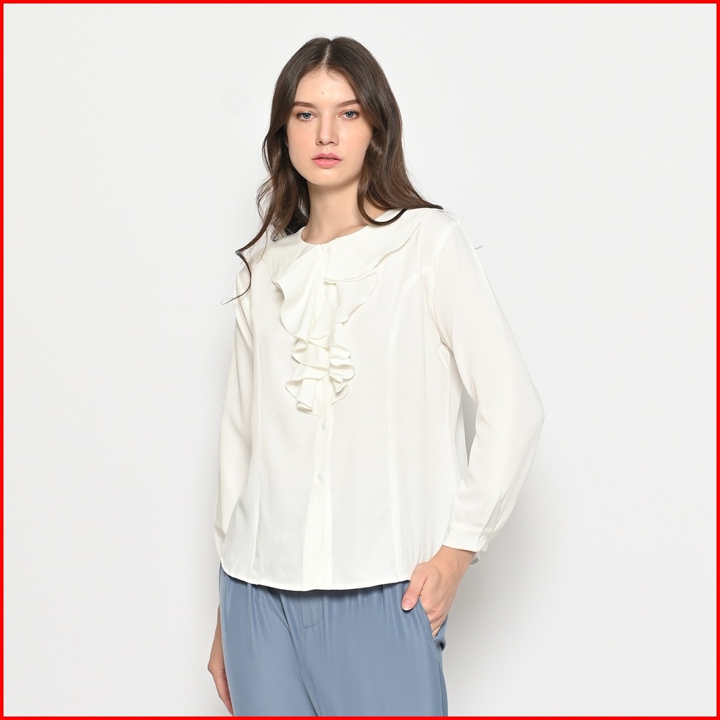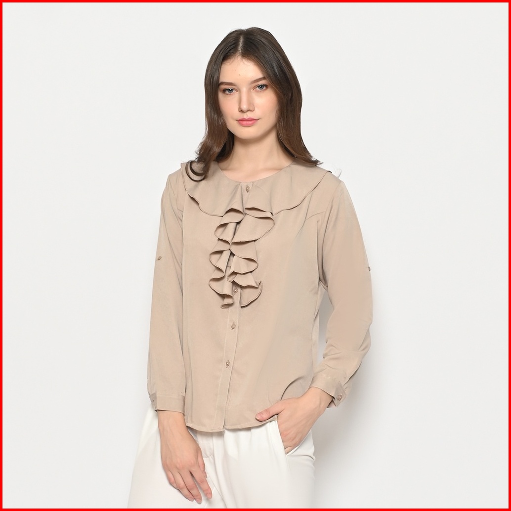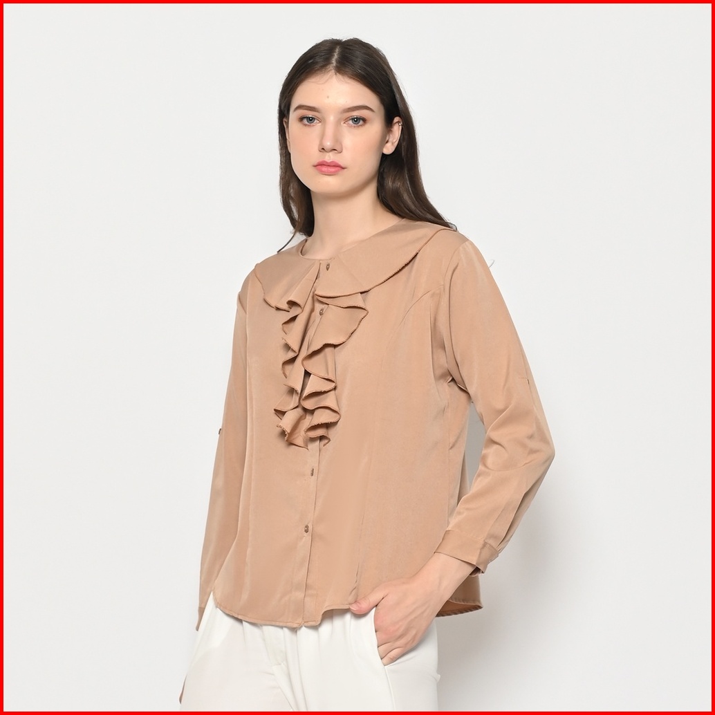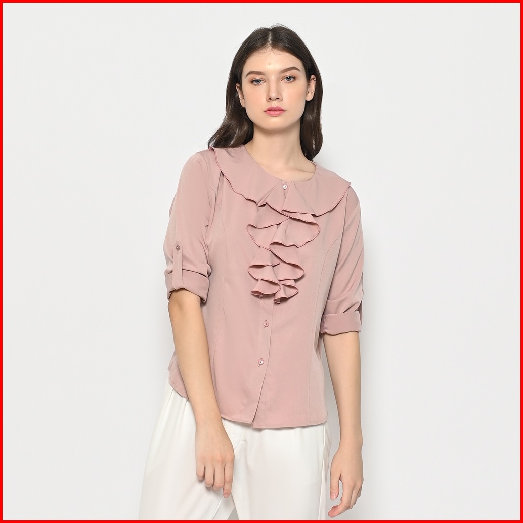 Queentin Kemeja Casual Wanita 0385 Katun Donna Polos Lengan Panjang Korean Style