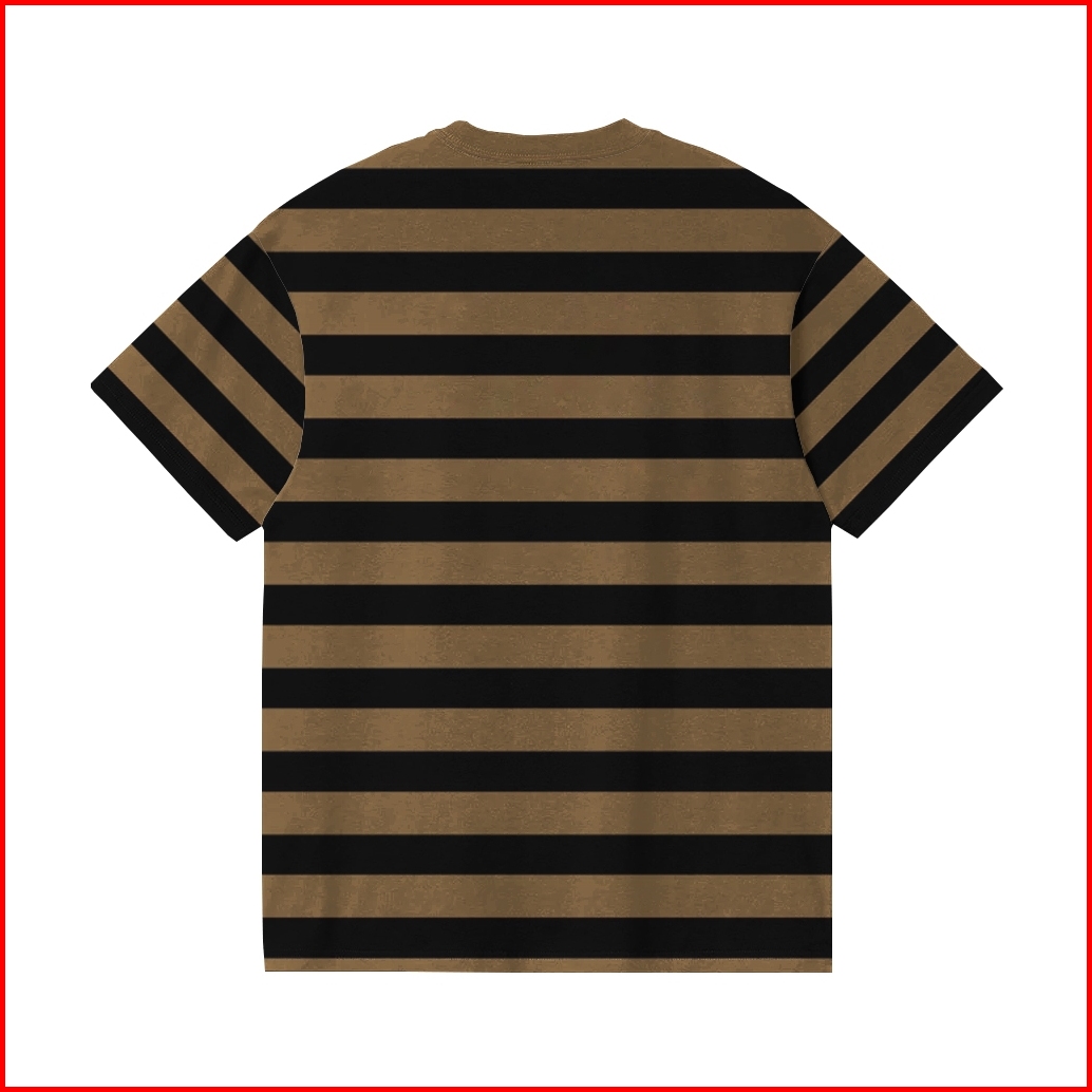 Secondly.id - Kaos Salur Lengan Pendek Jumbo Tshirt Brown Hitam Stripe 24s