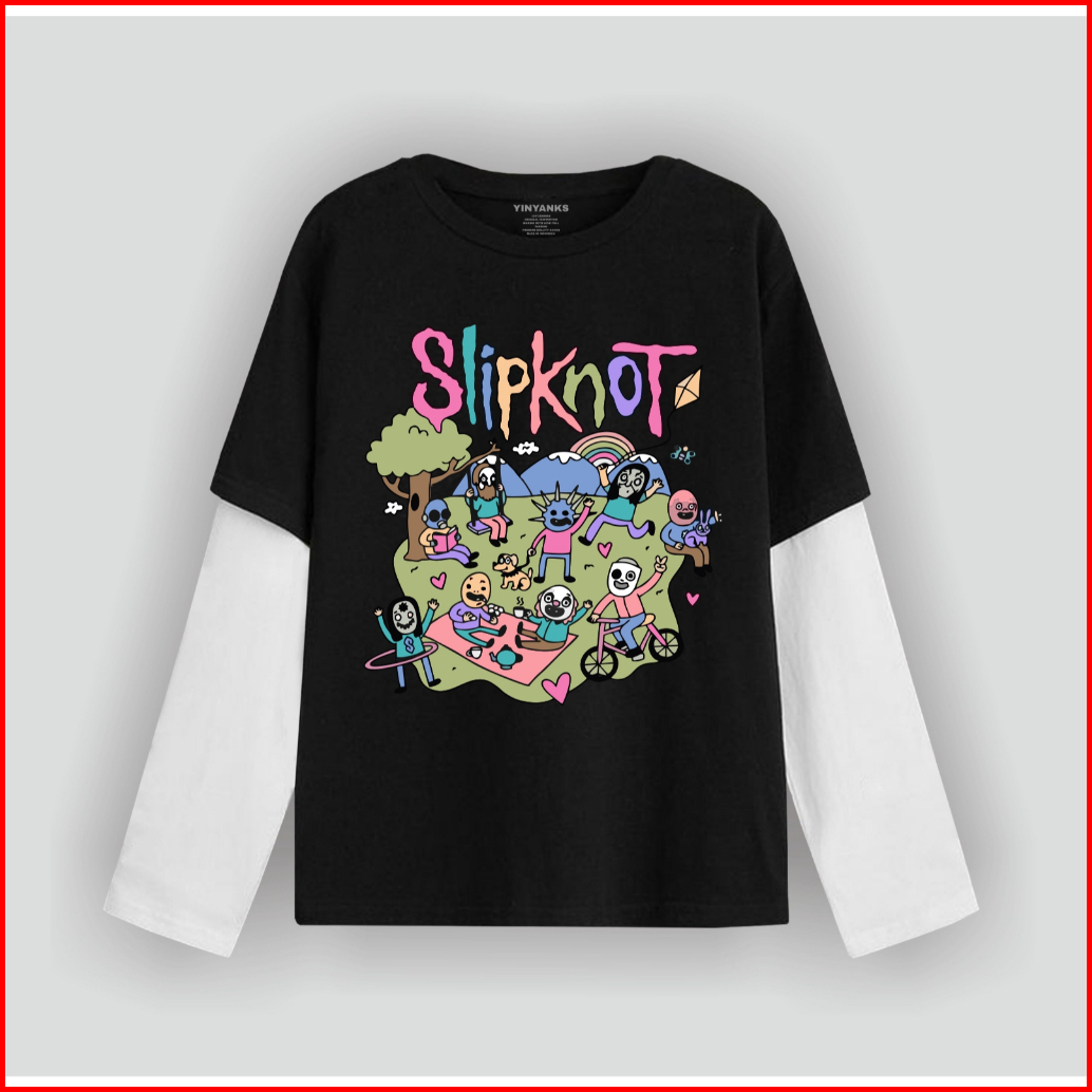 Yinyanks T-shirt Double Layer Slipknot Carton Kaos Musik Long Sleeve Pria Wanita
