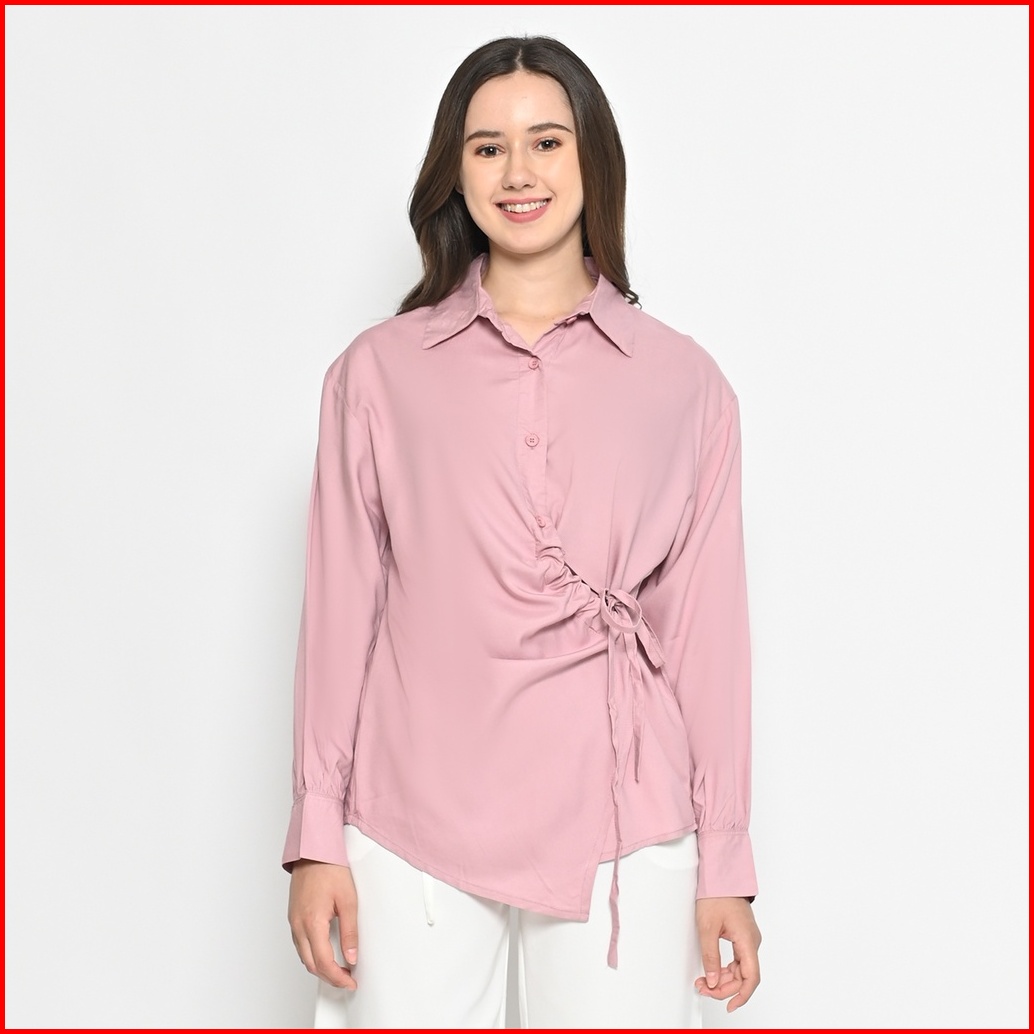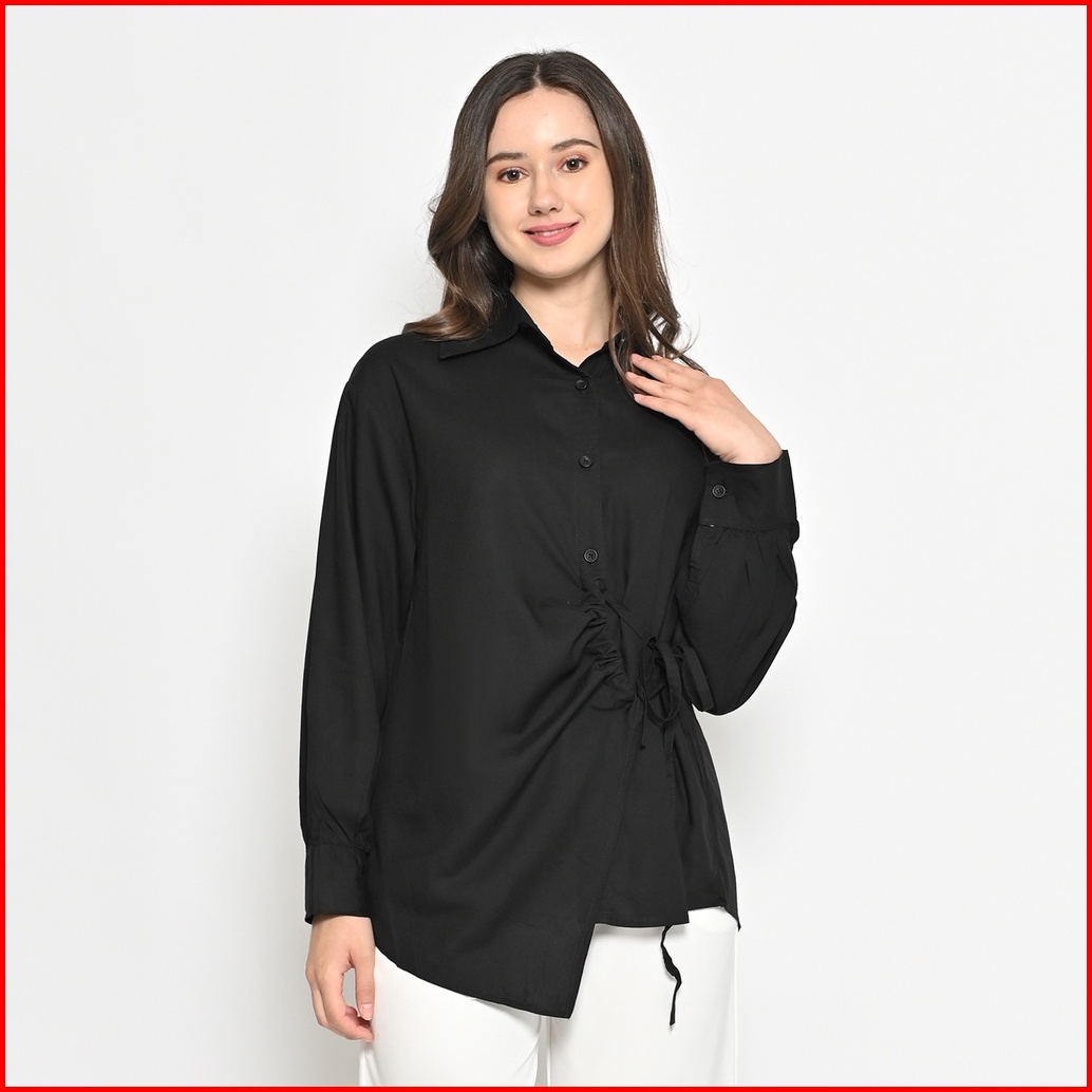 Queentin Kemeja Blouse Casual Wanita 0470 Katun Primacool Polos Premium Lengan Panjang