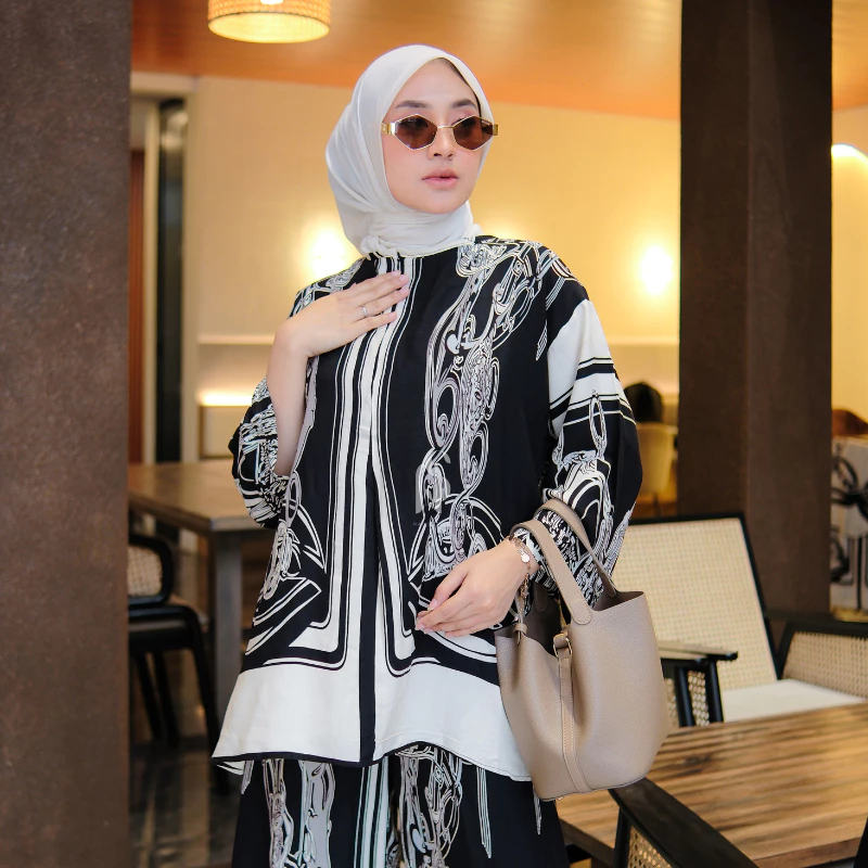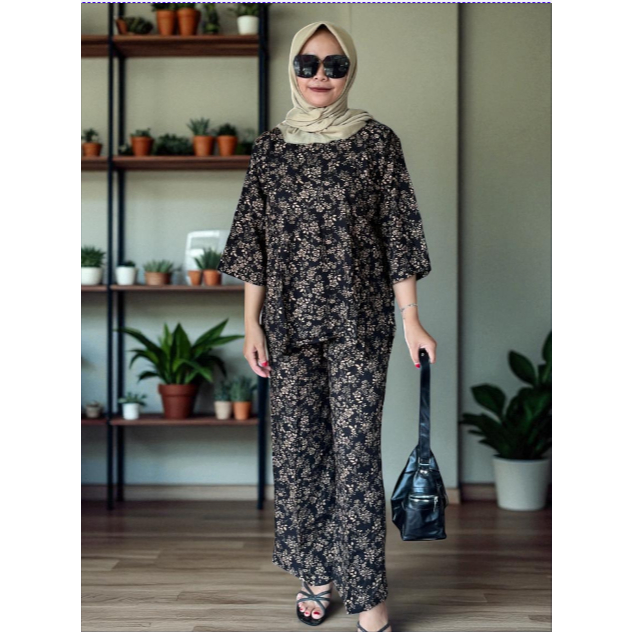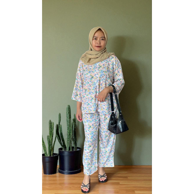 Thalia One Set Rayon Motif Premium Baju Setelan Celana Kulot Wanita Kekinian Jumbo Nabil Series