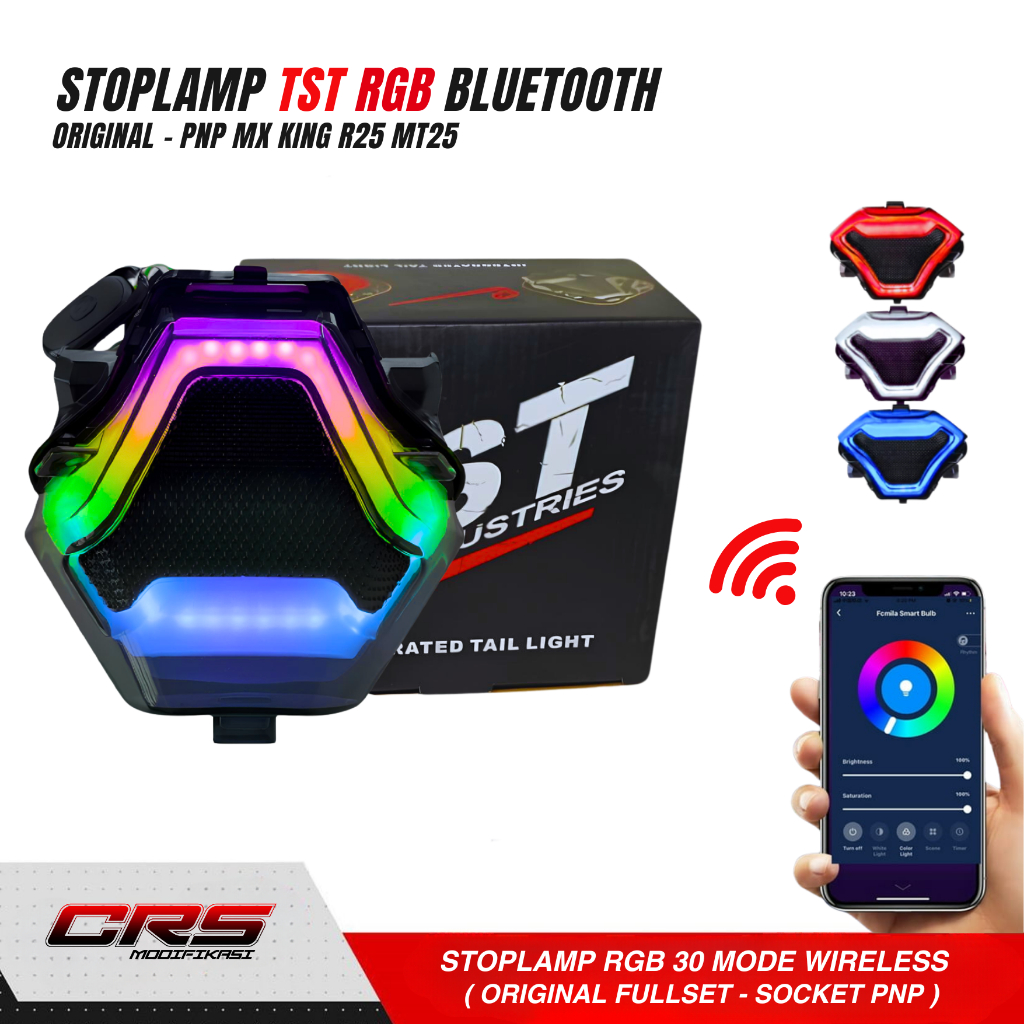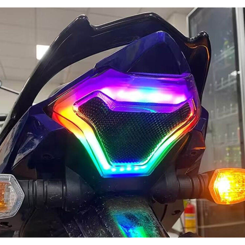 LAMPU BELAKANG MX KING MODE 3 IN 1 STOPLAMP RGB TST YAMAHA R25 MT25 MX KING ORIGINAL BIRU BLUETOOTH