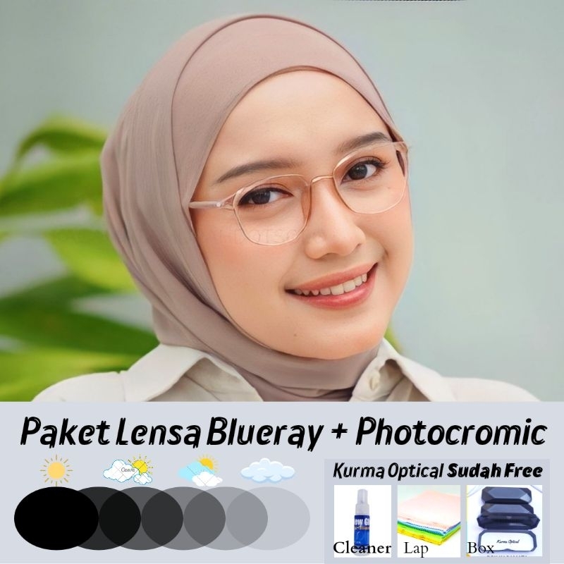 Kurma Optical Frame 5004 Kacamata Minus Wanita Lentur Oval Photocromic Anti Radiasi