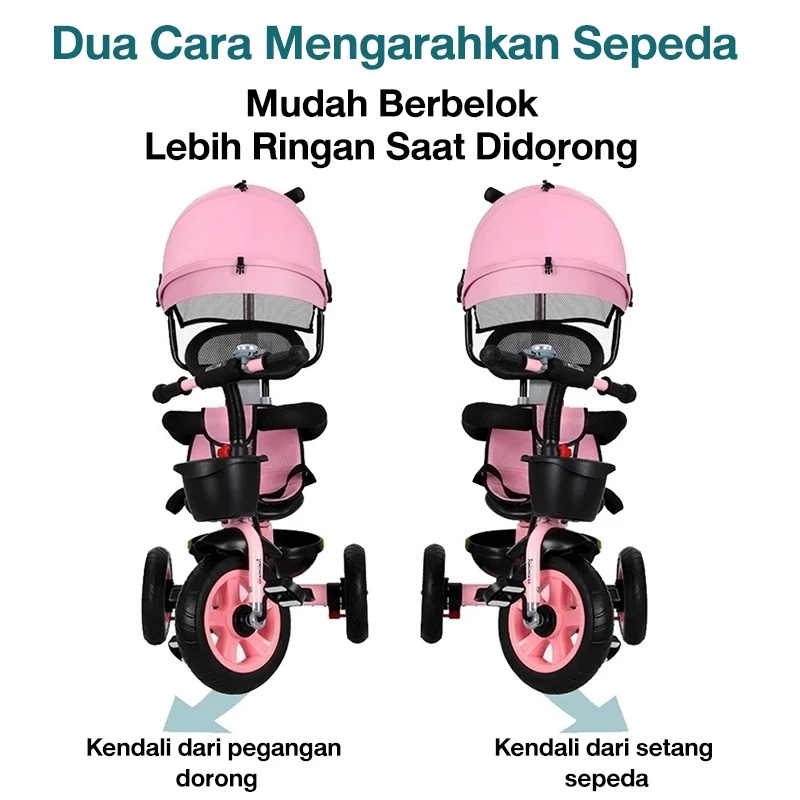 BEIGE Sepeda Anak Roda 3 Balance Bike Sepeda Roda 3 Anak Perempuan 1 - 8 Tahun Keranjang Roda 3 Bayi