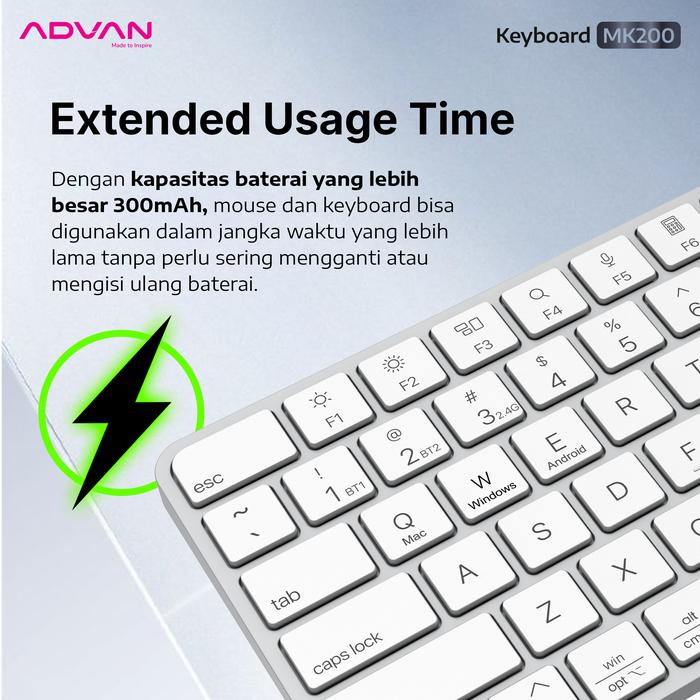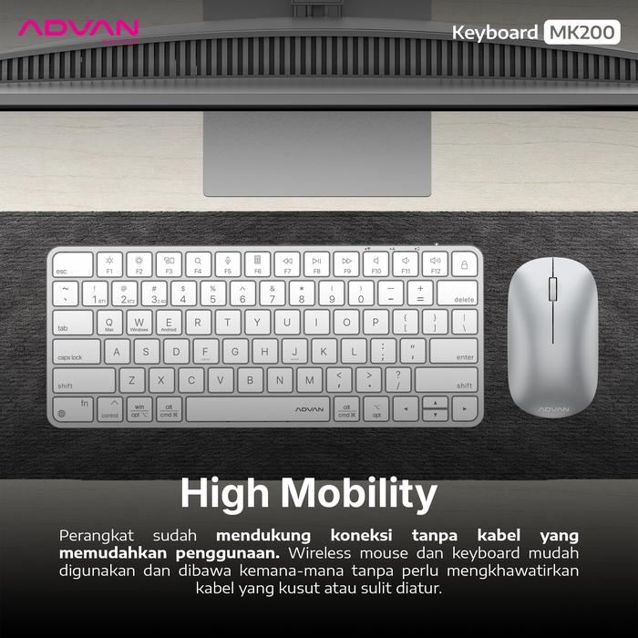 TERLARIS ADVAN MOUSE & KEYBOARD WIRELESS 24G MK200 BUNDLE COMBO OFFICE BLUETOOTH SUPPORT WINDOWS IOS ANDROID SLIM COMPACT PORTABLE