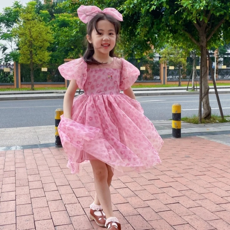 [Little Dream Official] 1-9 Tahun Dress Pesta Magenta Bando Ana Perempuan Gaun Pita Party Ulang Tahun NTQ-076
