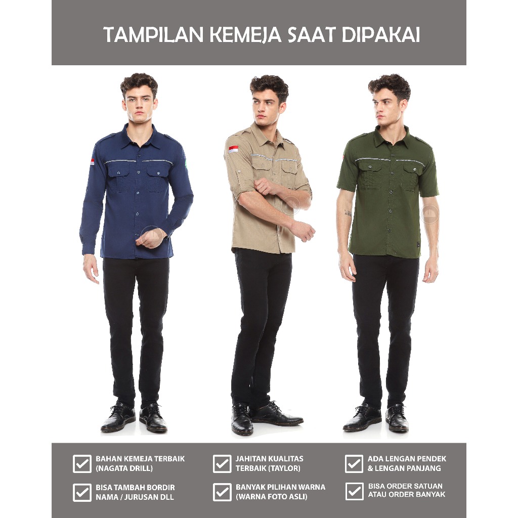 Kemeja Pdl Hijau Army Lengan Panjang High Quality