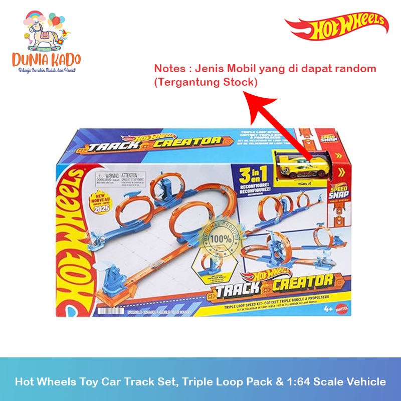 Hot Wheels Toy Car Track Set, Triple Loop Pack & 1:64 Scale Vehicle, Track-Building Components with 3 Loops