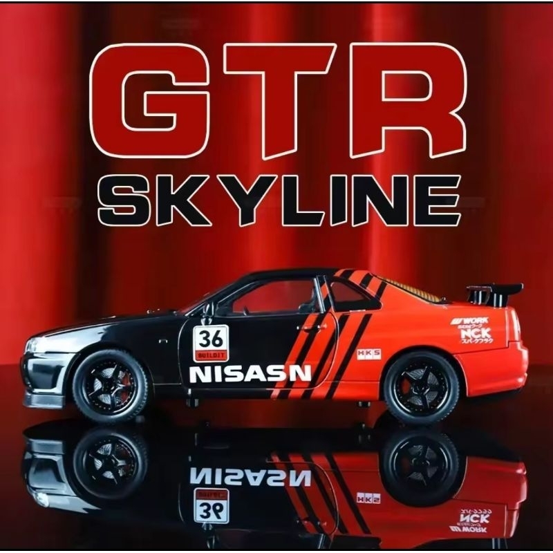 Diecast Mobil Miniatur Nissan Skyline GTR R34 SS (Super Silhouette) GTR R35 GT-R CSR2 R50 LBWK Skala 1:24 (Ada Lampu & S